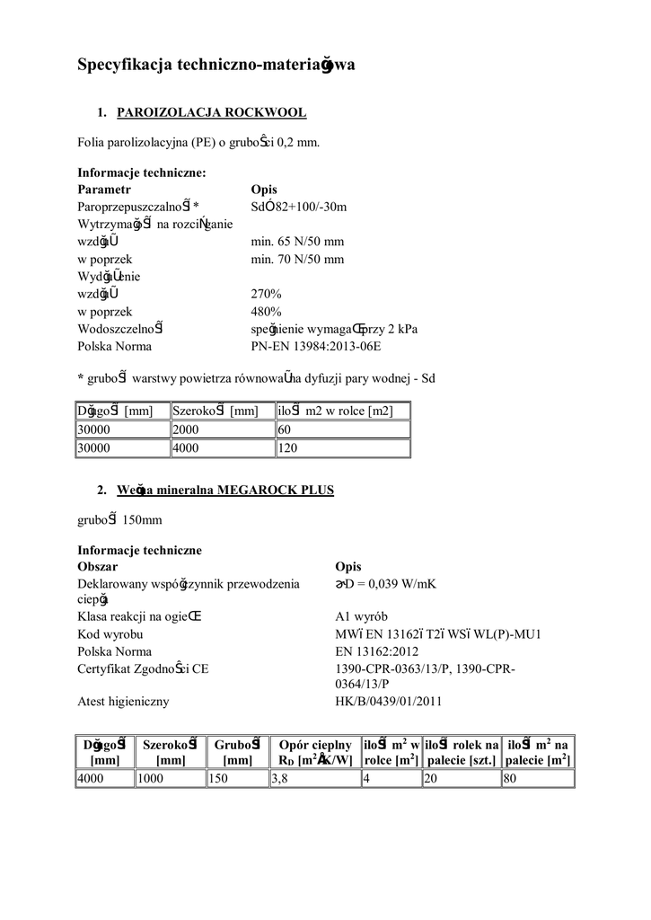 3h. Projekt. Specyfikacja techniczno materiałowa