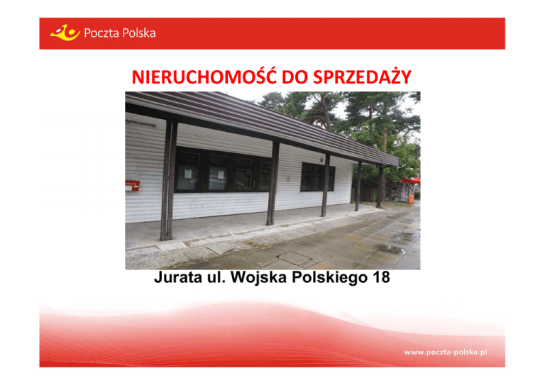 NIERUCHOMOŚĆ DO SPRZEDAŻY Jurata ul. Wojska Polskiego 18 Przedmiot sprzedaży: Nieruchomość gruntowa, oznaczona w ewidencji gruntów jako działki nr 50/2 oraz 51/2, o łącznej powierzchni 395 m². Działka nr 50/2 o powierzchni 70 m² stanowi działkę niezabudowaną, działka nr 51/2 o powierzchni 325 m² stanowi działkę zabudowaną budynkiem biurowym o powierzchni użytkowej 78,50 m², położonej w miejscowości Jurata ul. Wojska Polskiego 18, gmina Jastarnia, pow. pucki, woj. pomorskie. Przedmiot sprzedaży: Miejscowość Jurata , woj. pomorskie Powiat / Gmina Pucki / Jastarnia Ulica i Nr budynku Ul. Wojska Polskiego 18 Powierzchnia użytkowa Budynek biurowy o powierzchni użytkowej 78,50 m kw. budynku Działka ewidencyjna 50/2 i 51/2 z obrębu Jastarnia[0002] o łącznym obszarze 395 m kw. Księga wieczysta Sąd Rejonowy w Wejherowie V Zamiejscowy Wydział Ksiąg Wieczystych z siedzibą w Pucku prowadzi księgę wieczystą Nr GD2W/00019795/9 Grunt Działki o regularnym prostokątnym kształcie, płaskie z dostępem do drogi gminnej – ul. Wojska Polskiego. Teren nr 51/2 działki ogrodzony (ogrodzenie drewniane), z bramą wjazdową w części frontowej. Działka nr 50/2 pokryta betonowymi płytami chodnikowymi, działka nr 51/2 zabudowana, przestrzeń wokół budynku porośnięta roślinnością trawiastą oraz pojedynczymi drzewami, ogrodzona, w sąsiedztwie zabudowa usługowa. Nieruchomość uzbrojona jest w media: przyłącza wodociągowe, kanalizacyjne, energetyczne. Teren, na którym znajduje się nieruchomość objęty jest miejscowym planem zagospodarowania przestrzennego (Uchwała Nr XXXVII/276/2013 Rady Miasta Jastarni z dnia 24 czerwca 2013 roku, publikacja Dz. U. Woj. Pom. poz. 3213 z dnia 24.06.2013) Według ustaleń miejscowego planu działki nr 50/2, 51/2 znajdują się w terenie o symbolu 045.UT tj. tereny zabudowy usługowej – hotele i ośrodki wypoczynkowe, sanatoria. Dopuszcza się zachowanie funkcji mieszkaniowej i pensjonatowej. Grunt KARTA TERENU nr 14 do miejscowego planu zagospodarowania przestrzennego miejscowości Jurata w mieście Jastarni 1. Symbol 045. 2. Powierzchnia 045. UT – 0,98 ha 3. Przeznaczenie terenu: Tereny zabudowy usługowej – hotele i ośrodki wypoczynkowe, sanatoria. Dopuszcza się zachowanie funkcji mieszkaniowej i pensjonatowej. Dla terenu 047. UT: dopuszcza się budowę sali wielofunkcyjnej na ok. 800 miejsc. 4. Zasady ochrony i kształtowania ładu przestrzennego: Wszelkie działania inwestycyjne należy realizować z poszanowaniem zasad ochrony i kształtowania ładu przestrzennego określonych w niniejszej uchwale. 5. Zasady ochrony środowiska, przyrody i krajobrazu kulturowego: 5.1. Tereny położone są w granicach specjalnego obszaru ochrony siedlisk „Zatoka Pucka i Półwysep Helski” PLH 220032 Europejskiej Sieci Ekologicznej Natura 2000 – zagospodarowanie zgodnie z przepisami odrębnymi. 5.2. Tereny położone są w granicach Nadmorskiego Parku Krajobrazowego – zagospodarowanie zgodnie z przepisami odrębnymi. 5.3. W zasięgu terenów występuje zieleń urządzona przyobiektowa, zieleń semileśna i ruderalna; wymagana pielęgnacja i maksymalna ochrona drzewostanu; w przypadku nowych nasadzeń dobór zieleni winien odbywać się z uwzględnieniem gatunków rodzimych – preferowana sosna „helska”. 5.4. W przypadku nowych nasadzeń dobór zieleni winien odbywać się z uwzględnieniem miejscowych warunków klimatycznych oraz cech podłoża gruntowego. 5.5. Drzewa wysokopienne należy sadzić w takiej odległości od granicy działki, aby nie zacieniały działek sąsiednich. 5.6. Obowiązuje poziom hałasu w środowisku jak dla terenów przeznaczonych na cele rekreacyjno – wypoczynkowe. Grunt 6. Zasady ochrony dziedzictwa kulturowego i zabytków oraz dóbr kultury współczesnej: 6.1. Część terenu 054. UT znajduje się w zasięgu strefy ochrony archeologicznej - obowiązują ustalenia określone w § 7 uchwały. 6.2. W granicach terenów 043. UT, 045. UT, 054. UT, 055. UT występują budynki objęte ochroną konserwatorską: – w granicach terenu 043. UT: budynek letniskowy przy ul. Ks. Gołębiowskiego 3. – w granicach terenu 045. UT: hotel „Lido” przy ul. Wojska Polskiego 26, – w granicach terenu 054. UT: hotel „Hungaria” przy ul. Międzymorze 1, – w granicach terenu 055. UT: pensjonat przy ul. Ratibora 16, Zasady ochrony wg ustaleń zawartych w § 7. 7. Wymagania wynikające z potrzeb kształtowania przestrzeni publicznych 7.1. Obiekty małej architektury: dopuszcza się. 7.2. Nośniki reklamowe: zakaz stosowania nośników reklamowych wielkoformatowych. 7.3. Tymczasowe obiekty usługowo-handlowe: nie dopuszcza się. 7.4. Urządzenia techniczne: dopuszcza się budowę, przebudowę i rozbudowę urządzeń i sieci infrastruktury technicznej, sieci teletechnicznych, informatycznych nie kolidujących z przeznaczeniem podstawowym terenu. 7.5. Zieleń: dopuszcza się. 8. Parametry i wskaźniki kształtowania zabudowy oraz zagospodarowania terenów 8.1. Linie zabudowy dla nowoprojektowanej zabudowy: zgodnie z rysunkiem planu. Dopuszcza się przekroczenie określonej na rysunku planu linii zabudowy: dla terenu 047.UT od strony ul. Mestwina do 1 m w kierunku ulicy obiektem Sali wielofunkcyjnej oraz dla terenu 046.UT od strony ul. Międzymorze do 2 m kierunku ulicy pod warunkiem zastosowania rozwiązań chroniących istniejące sosny. Grunt 8.2. Maksymalna wielkość powierzchni zabudowy w stosunku do powierzchni działki budowlanej: 045. UT wg linii zabudowy, dopuszcza się możliwość rozbudowy o nie więcej niż 6% istniejącej powierzchni budynku w jego obrysie zewnętrznym na cele basenu z funkcjami towarzyszącymi. 8.3. Minimalny procent powierzchni biologicznie czynnej: 60% powierzchni działki budowlanej, dla terenów 045.UT i 047.UT - 40% powierzchni działki budowlanej.8.4. Intensywność zabudowy: określają ustalenia zawarte w pkt 8.2. i 8.6.8.5. Szerokość elewacji: nie okre