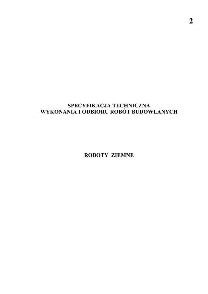 2 SPECYFIKACJA TECHNICZNA WYKONANIA I ODBIORU ROBÓT BUDOWLANYCH ROBOTY ZIEMNE SPIS TREŚCI 1. 2. 3. 4. 5. 6. 7. 8. 9. 10. WSTĘP MATERIAŁY (GRUNTY) SPRZĘT TRANSPORT WYKONANIE ROBÓT KONTROLA JAKOSCI ROBÓT OBMIAR ROBÓT ODBIÓR ROBÓT PODSTAWA PŁATNOŚCI PRZEPSIY ZWIĄZANE Ilekroć w specyfikacji technicznej wskazano markę lub pochodzenie produktu lub urządzenia, należy przyjąć, że za każdą nazwą umieszczone jest słowo „lub równoważne”. Wykazane produkty lub urządzenia posłużyły do dokonania obliczeń parametrów technicznych oraz rozmieszczenia urządzeń. 1. Wstęp 1.1. Przedmiot ST Przedmiotem niniejszej specyfikacji technicznej (ST) są wymagania dotyczące wykonania i odbioru robót ziemnych związanych z wykonaniem obiektów kubaturowych dla zadania Budowa pompowni sieciowej ze zbiornikiem retencyjnym dla wodociągu Wolica w m. Stobno, gm. Godziesze Wielkie. 1.2. Zakres robót objętych ST Ustalenia zawarte w niniejszej specyfikacji dotyczą zasad prowadzenia robót ziemnych w czasie budowy lub modernizacji obiektów budowlanych i obejmują: wykonanie wykopów w gruntach nieskalistych, budowę nasypów, pozyskiwanie gruntu z ukopu. 1.3. Określenia podstawowe Budowla ziemna - budowla wykonana w gruncie lub z gruntu naturalnego lub z gruntu antropogenicznego spełniająca warunki stateczności i odwodnienia. Korpus drogowy - nasyp lub ta część wykopu, która jest ograniczona koroną drogi i skarpami rowów. Wysokość nasypu lub głębokość wykopu - różnica rzędnej terenu i rzędnej robót ziemnych, wyznaczonych w osi nasypu lub wykopu. Nasyp niski - nasyp, którego wysokość jest mniejsza niż 1 m. Nasyp średni - nasyp, którego wysokość jest zawarta w granicach od 1 do 3 m. Nasyp wysoki - nasyp, którego wysokość przekracza 3 m. Wykop płytki - wykop, którego głębokość jest mniejsza niż 1 m. Wykop średni - wykop, którego głębokość jest zawarta w granicach od 1 do 3 m. Wykop głęboki - wykop, którego głębokość przekracza 3 m. Bagno - grunt organiczny nasycony wodą, o małej nośności, charakteryzujący się znacznym i długotrwałym osiadaniem pod obciążeniem. Grunt nieskalisty - każdy grunt rodzimy, nie określony w punkcie 1.4.12 jako grunt skalisty. Grunt skalisty - grunt rodzimy, lity lub spękany o nieprzesuniętych blokach, którego próbki nie wykazują zmian objętości ani nie rozpadają się pod działaniem wody destylowanej; mają wytrzymałość na ściskanie Rc ponad 0,2 MPa; wymaga użycia środków wybuchowych albo narzędzi pneumatycznych lub hydraulicznych do odspojenia. Ukop - miejsce pozyskania gruntu do wykonania nasypów, położone w obrębie pasa robót drogowych. Dokop - miejsce pozyskania gruntu do wykonania nasypów, położone poza pasem robót drogowych. Odkład - miejsce wbudowania lub składowania (odwiezienia) gruntów pozyskanych w czasie wykonywania wykopów, a nie wykorzystanych do budowy nasypów oraz innych prac związanych z trasą drogową. Wskaźnik zagęszczenia gruntu - wielkość charakteryzująca stan zagęszczenia gruntu, określona wg wzoru: Is = ρd ρ ds gdzie: ρd gęstość objętościowa szkieletu zagęszczonego gruntu, zgodnie z BN-77/8931-12 [9], (Mg/m3), ρds maksymalna gęstość objętościowa szkieletu gruntowego przy wilgotności optymalnej, zgodnie z PN-B-04481:1988 [2], służąca do oceny zagęszczenia gruntu w robotach ziemnych, (Mg/m3). Wskaźnik różnoziarnistości - wielkość charakteryzująca zagęszczalność gruntów niespoistych, określona wg wzoru: U = d 60 d 10 gdzie: d60 średnica oczek sita, przez które przechodzi 60% gruntu, (mm), d10 średnica oczek sita, przez które przechodzi 10% gruntu, (mm). Wskaźnik odkształcenia gruntu - wielkość charakteryzująca stan zagęszczenia gruntu, określona wg wzoru: I0 = E2 E1 gdzie: E1-moduł odkształcenia gruntu oznaczony w pierwszym obciążeniu badanej warstwy zgodnie z PN-S-02205:1998 [4], E2-moduł odkształcenia gruntu oznaczony w powtórnym obciążeniu badanej warstwy zgodnie z PN-S-02205:1998 [4]. Geosyntetyk - materiał stosowany w budownictwie drogowym, wytwarzany z wysoko polimeryzowanych włókien syntetycznych, w tym tworzyw termoplastycznych polietylenowych, polipropylenowych i poliestrowych, charakteryzujący się między innymi dużą wytrzymałością oraz wodoprzepuszczalnością, zgodny z PN-ISO10318:1993 [5], PN-EN-963:1999 [6]. Geosyntetyki obejmują: geotkaniny, geowłókniny, geodzianiny, georuszty, geosiatki, geokompozyty, geomembrany, zgodnie z wytycznymi IBDiM [13]. Pozostałe określenia podstawowe są zgodne z obowiązującymi, odpowiednimi polskimi normami i z definicjami podanymi w ST „Wymagania ogólne” 1.4. Ogólne wymagania dotyczące robót Ogólne wymagania dotyczące robót podano w ST „Wymagania ogólne” 2. Materiały (grunty) 2.1. Ogólne wymagania dotyczące materiałów Ogólne wymagania dotyczące materiałów, ich pozyskiwania i składowania, podano w ST „Wymagania ogólne” 2.2. Zasady wykorzystania gruntów Grunty uzyskane przy wykonywaniu wykopów powinny być przez Wykonawcę wykorzystane w maksymalnym stopniu do budowy nasypów. Grunty przydatne do budowy nasypów mogą być wywiezione poza teren budowy tylko wówczas, gdy stanowią nadmiar objętości robót ziemnych i za zezwoleniem Inżyniera. Jeżeli grunty przydatne, uzyskane przy wykonaniu wykopów, nie będąc nadmiarem objętości robót ziemnych, zostały za zgodą Inżyniera wywiezione przez Wykonawcę poza teren budowy z przeznaczeniem innym niż budowa nasypów lub wykonanie prac objętych kontraktem, Wykonawca jest zobowiązany do dostarczenia równoważnej objętości gruntów przydatnych ze źródeł własnych, zaakceptowanych przez Inżyniera. Grunty i materiały nieprzydatne do budowy nasypów, powinny być wywiezione przez Wykonawcę na odkład. Zapewnienie terenów na odkład należy do obowiązków Zamawiającego, o ile nie określono tego inaczej w kontrakcie. Inżynier może