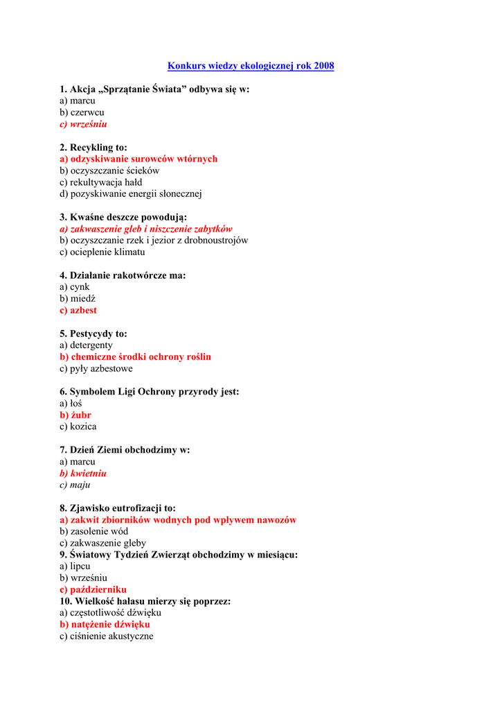 Konkurs wiedzy ekologicznej rok 2008