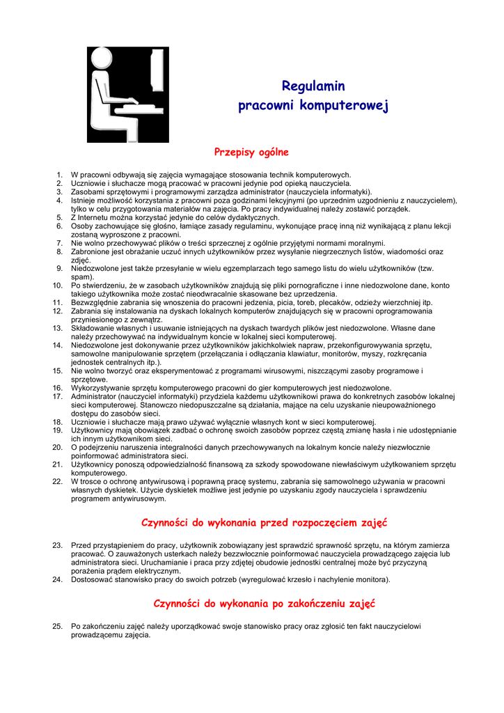 Regulamin pracowni komputerowej