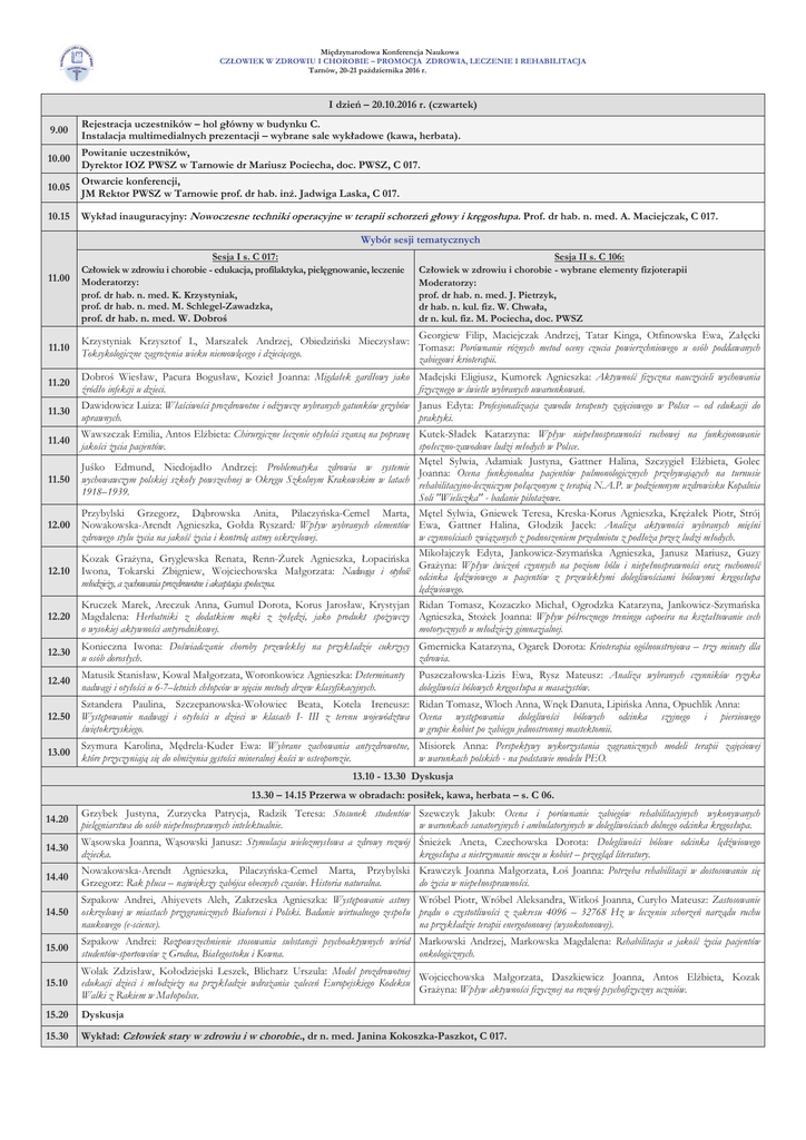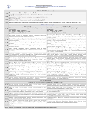 I dzie – 20.10.2016 r. (czwartek) 9.00 Rejestracja uczestników – hol
