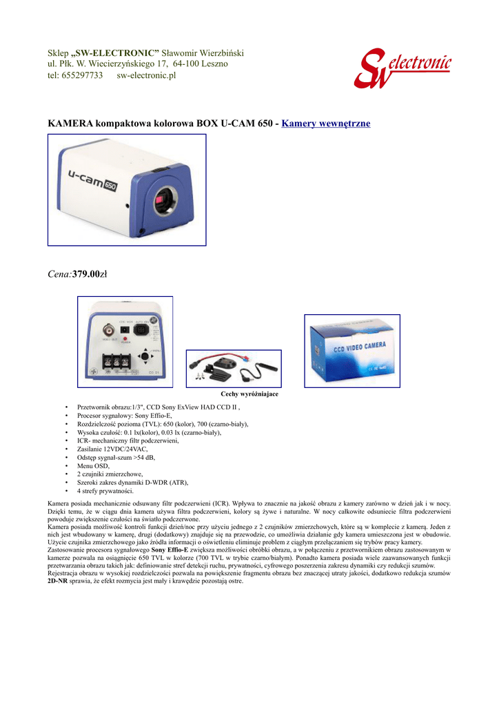 KAMERA kompaktowa kolorowa BOX U-CAM 650