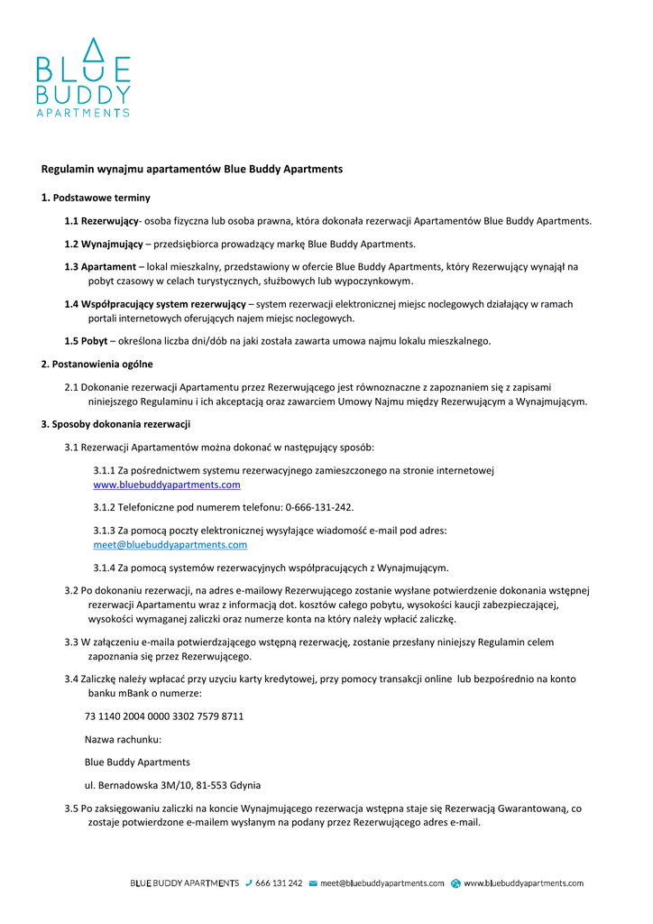 Regulamin wynajmu apartamentów Blue Buddy Apartments