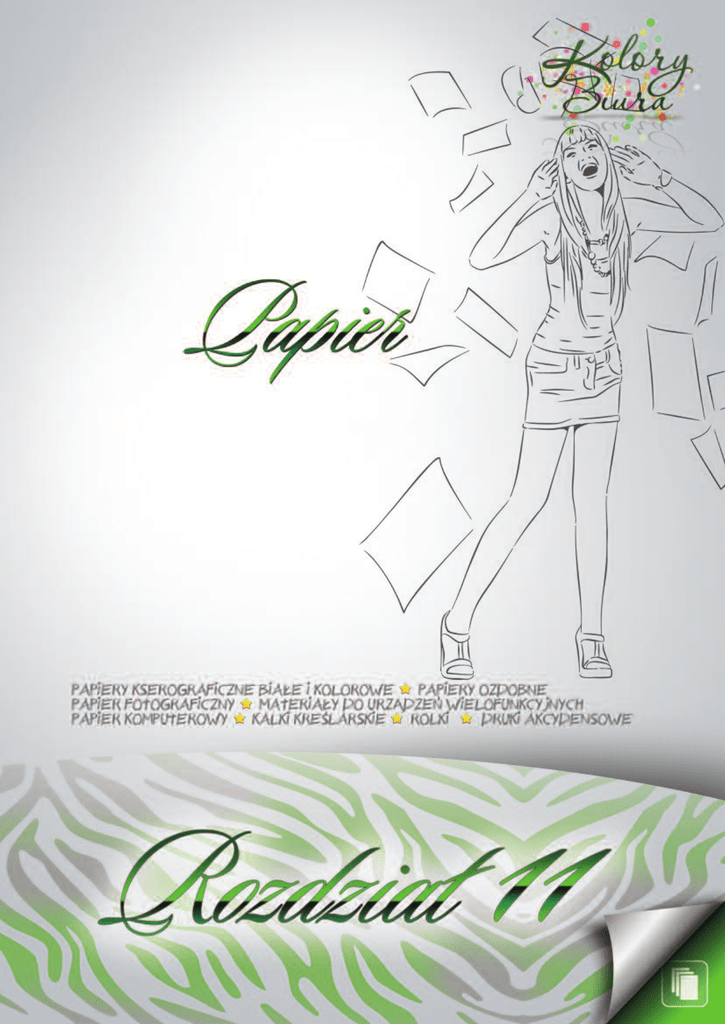 PAPIER Papier POL Jet Prime 80 Papier POL Jet Prime 90 Prestiż każdego dokumentu • przeznaczony szczególnie dla użytkowników drukarek atramentowych • technologia ColorLok™ gwarantuje błyskawiczne wysychanie druku, pogłębione odcienie czerni oraz jednolite intensywne kolory • logo FSC oznacza, że produkt został wytworzony z drewna pochodzącego z lasów spełniających Zasady Dobrej Gospodarki Leśnej, wypracowane przez międzynarodową organizację Forest Stewardship Council • optymalna sztywność sprawia, że urządzenia działają niezawodnie, umożliwiając zadruk jedno- i dwustronny • wysoka białość zapewnia wyraźny kontrast tekstu i kolorów • idealny do kolorowych prezentacji, korespondencji biznesowej i ofert handlowych • gramatura: 80 g/m², białość: CIE 166, opakowanie 1 ryza (500 ark.) Prestiż każdego dokumentu • przeznaczony szczególnie dla użytkowników drukarek atramentowych • technologia ColorLok™ gwarantuje błyskawiczne wysychanie druku, pogłębione odcienie czerni oraz jednolite intensywne kolory • logo FSC oznacza, że produkt został wytworzony z drewna pochodzącego z lasów spełniających Zasady Dobrej Gospodarki Leśnej, wypracowane przez międzynarodową organizację Forest Stewardship Council • optymalna sztywność sprawia, że urządzenia działają niezawodnie, umożliwiając zadruk jedno- i dwustronny • wysoka białość zapewnia wyraźny kontrast tekstu i kolorów • idealny do kolorowych prezentacji, korespondencji biznesowej i ofert handlowych • gramatura: 80 g/m², białość: CIE 166, opakowanie 250 ark. PAPIERY KSEROGRAFICZNE BIAŁE Indeks IP1004 IP1006 Format A4 A3 Indeks IP1005 Papier POL lux Papier POL speed Profesjonalizm, elegancja i komfort pracy • przeznaczony do wszystkich działań biurowych do wydruków czarno-białych, kolorowych i kopiowania • technologia ColorLok™ gwarantuje błyskawiczne wysychanie druku, pogłębione odcienie czerni oraz jednolite intensywne kolory • logo FSC oznacza, że produkt został wytworzony z drewna pochodzącego z lasów spełniających Zasady Dobrej Gospodarki Leśnej, wypracowane przez międzynarodową organizację Forest Stewardship Council • optymalna sztywność zapewnia niezawodne działanie urządzeń • idealny do korespondencji zewnętrznej, druku kolorowych wykresów i tekstów oraz wydruków próbnych • gramatura: 80 g/m², białość: CIE 161, opakowanie 1 ryza (500 ark.) Standard wysokich nakładów • przeznaczony do wysokonakładowych drukarek i kopiarek • technologia ColorLok™ gwarantuje błyskawiczne wysychanie druku oraz pogłębione odcienie czerni • idealny do czarno-białych codziennych dokumentów i korespondencji wewnętrznej • gramatura: 80 g/m², białość: CIE 146, opakowanie 1 ryza (500 ark.) Indeks IP1002 IP1003 Format A4 A3 Papier POL Lux z dziurkami Profesjonalizm, elegancja i komfort pracy • przeznaczony do wydruków czarno-białych, kolorowych i kopiowania • technologia ColorLok™ gwarantuje błyskawiczne wysychanie druku, pogłębione odcienie czerni oraz jednolite intensywne kolory • logo FSC oznacza, że produkt został wytworzony z drewna pochodzącego z lasów spełniających Zasady Dobrej Gospodarki Leśnej, wypracowane przez międzynarodową organizację Forest Stewardship Council • fabrycznie dziurkowany - wersja z dwiema lub czterema dziurkami pozwala na szybkie umieszczenie dokumentów w segregatorze • idealny do materiałów szkoleniowych • gramatura: 80 g/m², białość: CIE 161, opakowanie 1 ryza (500 ark.) 240 Format A4 Indeks IP1016 IP1015 Format A4 A4 Opis 2 dziurki 4 dziurki infolinia 0800 900 021 Indeks IP1000 IP1001 Format A4 A3 PAPIER ing! m o o Z t r a . St Save time Papier Zoom Image Papier Zoom Extra • przeznaczony do faksów i drukarek atramentowych • idealny do wysokiej jakości czarno-białych kopii • kopiowanie jednostronne i dwustronne • bezdrzewny • gramatura 80 g/m² • białość CIE 149 • certyfikaty ISO 9001, ISO 14001 • opakowanie 1 ryza (500 ark.) • przeznaczony do drukarek atramentowych i laserowych oraz kopiarek • idealny do wydruków kolorowych gdzie wymagana jest najwyższa jakość • bezdrzewny • gramatura 80 g/m² • białość CIE 168 • certyfikaty ISO 9001, ISO 14001 • opakowanie 1 ryza (500 ark.) • przeznaczony do czarno-białych i kolorowych drukarek atramentowych, laserowych, faksów oraz kopiarek • bezdrzewny • gramatura 80 g/m² • białość CIE 161 • certyfikaty ISO 9001, ISO 14001 • opakowanie 1 ryza (500 ark.) Indeks ZO1000 ZO1001 Format A4 A3 Indeks ZO1004 ZO1005 Format A4 A3 Indeks ZO1002 ZO1003 www.partner21.pl PAPIERY KSEROGRAFICZNE BIAŁE Papier Zoom Format A4 A3 241 PAPIER POL Color Laser Profesjonalny kolorowy wydruk o fotograficznej jakości • przeznaczony szczególnie do kolorowych drukarek laserowych • satynowana, gładka powierzchnia zapewnia żywe, intensywne barwy • wysoka sztywność i doskonała struktura arkusza gwarantuje zadruk jedno- i dwustronny • idealny do wielobarwnych prezentacji, grafik, wykresów i ofert handlowych • gramatura: 90, 100, 120, 160, 200, 250, 280 g/m², białość: CIE 161 PAPIERY KSEROGRAFICZNE BIAŁE Indeks IP1073 IP1074 IP1075 IP1076 IP1077 IP1078 IP1079 IP1080 IP1081 IP1082 IP1083 IP1084 IP1085 IP1086 242 Format/gramatura A4/90 g/m² A3/90 g/m² A4/100 g/m² A3/100 g/m² A4/120 g/m² A3/120 g/m² A4/160 g/m² A3/160 g/m² A4/200 g/m² A3/200 g/m² A4/250 g/m² A3/250 g/m² A4/280 g/m² A3/280 g/m² Opakowanie 250 ark. 250 ark. 250 ark. 250 ark. 250 ark. 250 ark. 250 ark. 250 ark. 250 ark. 250 ark. 250 ark. 125 ark. 125 ark. 125 ark. infolinia 0800 900 021 PAPIER Papier Rey Text & Graphics Przyjazny środowisku wysokiej jakości papier o aksamitnej powierzchni • przeznaczony do kopiarek oraz drukarek laserowych i atramentowych • ekstremalna białość i gładka powierzchnia zapewniają doskonałe wydruki zarówno kolorowe, jak i czarno-białe • 