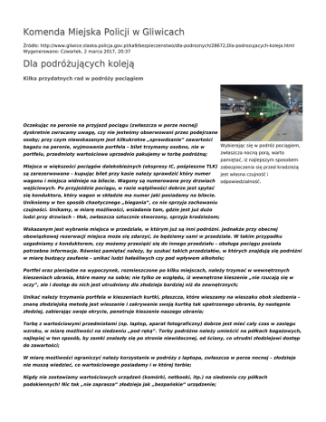 Komenda Miejska Policji w Gliwicach Dla podróżujących koleją