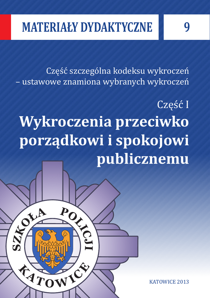 MATERIAŁY DYDAKTYCZNE 9 Część szczególna kodeksu wykroczeń – ustawowe znamiona wybranych wykroczeń Część I Wykroczenia przeciwko porządkowi i spokojowi publicznemu KATOWICE 2013 kom. Henryk Bartecki asp. Rafał Błoch Zakład Służby Kryminalnej Część szczególna kodeksu wykroczeń – ustawowe znamiona wybranych wykroczeń Część I Wykroczenia przeciwko porządkowi i spokojowi publicznemu Katowice 2013 Redakcja: mł. insp. Jacek Słobosz Redakcja techniczna i korekta: Paweł Mięsiak © Szkoła Policji w Katowicach, Katowice 2013. Pewne prawa zastrzeżone. Niniejsza publikacja w całości stanowi materiał dydaktyczny Szkoły Policji w Katowicach. Publikacja dostępna jest na licencji: Creative Commons – Uznanie autorstwa – Użycie niekomercyjne – Bez utworów zależnych 3.0 Polska (CC-BY-NC-ND) 3.0. Polska. Postanowienia licencji są dostępne pod adresem: http://creativecommons.org/licenses/by-nc-nd/3.0/pl/legalcode Spis treści Wstęp............................................................................................................................... 4 Wykaz skrótów................................................................................................................ 5 Rozdział 1. Uwagi ogólne................................................................................................. 6 1.1.Wykroczenie..........................................................................................................6 1.2. Przestępstwo.........................................................................................................7 1.3. Ustawowe znamiona wykroczenia........................................................................7 1.3.1. Podmiot.......................................................................................................7 1.3.2. Strona podmiotowa....................................................................................8 1.3.3. Przedmiot ochrony......................................................................................8 1.3.4. Strona przedmiotowa..................................................................................9 Rozdział 2. Ustawowe znamiona wykroczeń przeciwko porządkowi i spokojowi publicznemu.........................................................11 2.1. Zbiegowisko publiczne – zaniechanie opuszczenia..............................................11 2.2. Posiadanie w miejscu publicznym noża, maczety lub innego podobnego przedmiotu w okolicznościach wskazujących na zamiar użycia go w celu popełnienia przestępstwa...................................................................................12 2.3. Spokój i porządek publiczny – zakłócenie............................................................14 2.4. Publiczne nawoływanie do popełnienia czynu zabronionego..............................18 2.5. Przepisy porządkowe – naruszenie......................................................................19 2.6. Żebractwo w miejscu publicznym........................................................................21 2.7. Ogłoszenia prywatne – umieszczanie w miejscu publicznym do tego nieprzeznaczonym...............................................................................................23 2.8. Nieruchomości – uchybienie obowiązkowi oznakowania....................................24 Zakończenie................................................................................................................... 26 Literatura........................................................................................................................ 27 Wstęp Przedmiotem niniejszego opracowania jest omówienie wybranych czynów zabronionych zawartych w ustawie Kodeks wykroczeń1, w celu dokonania ich analizy pod kątem ustawowych znamion wykroczeń – podmiotu i przedmiotu ochrony, strony przedmiotowej i podmiotowej. Praca ta przedstawia wybrany fragmentu prawa wykroczeń w sposób zrozumiały zarówno dla osób posiadających już pewną wiedzę, jak również dla stykających się z tym zagadnieniem po raz pierwszy. W skrypcie omówiono wybrane czyny zabronione poprzez ich teoretyczną analizę, hipotetyczne przykłady oraz poparcie autentycznymi orzeczeniami sądów. 1 4 Ustawa z dnia 20 maja 1971 r. Kodeks wykroczeń, (Dz.U. z 2013 r., poz. 482 j.t.). Materiały dydaktyczne Szkoły Policji w Katowicach Wykaz skrótów k.w. – ustawa z dnia 20 maja 1971 r. Kodeks wykroczeń, (Dz.U. z 2013 r., poz. 482 j.t.), k.k. – ustawa z dnia 6 czerwca 1997 r. – Kodeks karny (Dz.U 1997 r. nr 88, poz. 553 z późn. zm.), Dz. U. – Dziennik Ustaw, art. – artykuł, itp. – i tym podobne, m.in. – między innymi, nr – numer, pkt – punkt, poz. – pozycja, r. – rok, rozp. – rozporządzenie, s. – strona (y), tj. – to jest, tzn. – tak znaczy, tzw. – tak zwany (a, e), wyd. – wydanie, wyr. – wyrok, w zw. – w związku, zm. – zmiana (y). Wykroczenia przeciwko porządkowi i spokojowi publicznemu 5 Rozdział 1. Uwagi ogólne Określenie „wybrane czyny zabronione” należy w tym miejscu zastąpić bardziej precyzyjnym dla potrzeb tej pracy, a mianowicie „wybrane wykroczenia”. By w pełni doprecyzować to określenie i powód, dla którego poświęcono temu uwagę, należy odnieść się do definicji samego wykroczenia. Definicję tę można samodzielnie skon- struować na podstawie pierwszych artykułów kodeksu wykroczeń. Po ich odczytaniu należy przyjąć, iż: 1.1. Wykroczenie Wykroczenie to czyn: – popełniony przez człowieka, który w chwili jego popełnienia miał ukończone 17 lat, – społecznie szkodliwy, – zabroniony przez ustawę obowiązującą w czasie jego popełnienia (o ustawowych znamionach) pod groźbą kary: aresztu, ograniczenia wolności, grzywny do 5000 zł lub nagany, – bezprawny, – zawiniony. Dla porównania i rozróżnienia należy również określić czyn zabroniony jakim jest przestępstwo. D