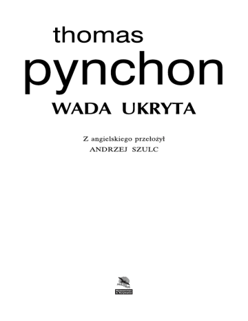 Tego autora WADA UKRYTA W SIECI Tytuł oryginału: INHERENT VICE Copyright © Thomas Pynchon 2009 All rights reserved Polish edition copyright © Wydawnictwo Albatros Andrzej Kuryłowicz s.c. 2014 Polish translation copyright © Andrzej Szulc 2011 Redakcja: Beata Słama Skład: Laguna ISBN 978-83-7885-558-3 Książka dostępna także jako e-book Dystrybutor Firma Księgarska Olesiejuk sp. z o.o. sp. j. Poznańska 91, 05-850 Ożarów Mazowiecki tel. (22) 721 30 00, faks (22) 721 30 01 www.olesiejuk.pl Wydawca WYDAWNICTWO ALBATROS ANDRZEJ KURYŁOWICZ S.C. Hlonda 2A/25, 02-972 Warszawa www.wydawnictwoalbatros.com 2015. Wydanie II Druk: CPI Moravia Books, Czech Republic 1 Przyszła alejką i wspięła się po schodkach z tyłu, tak jak to zwykle robiła. Doc nie widział jej od ponad roku. Nikt jej nie widział. Dawniej zawsze chodziła w sandałach, dole od bikini w kwiatki i spranym podkoszulku Country Joe & the Fish. Tego wieczoru była ubrana jak typowa panna z miasta, z włosami znacznie krótszymi, niż zapamiętał. Wyglądała dokładnie tak, jak przysięgała, że nigdy nie będzie. — To ty, Shasto? — Wydaje mu się, że ma omamy. — To chyba kwestia nowego opakowania. Stojąc w ulicznym świetle wpadającym przez kuchenne okno, tak bladym, że nigdy nie było sensu wieszać zasłon, słuchali dobiegającego z dołu przyboju. Wieczorami, kiedy zdrowo wiało, łoskot fal słychać było niekiedy w całym mieście. — Chcę, żebyś mi pomógł, Doc. — Wiesz, że mam teraz biuro? Tak jakbym normalnie chodził do pracy? — Sprawdziłam w książce telefonicznej. Zastanawiałam się, czy tam pójść. Ale potem pomyślałam, że lepiej dla wszystkich, żeby to wyglądało na schadzkę. Okay, nici z romantycznego wieczoru. Niech to szlag. Ale może trafi się chociaż jakaś fucha. — Ktoś ma cię na oku? — Przez godzinę jeździłam po okolicy, żeby nie wzbudzać podejrzeń. — Może piwa? — Podszedł do lodówki, wyjął dwie puszki ze skrzynki, którą trzymał w środku, i podał jej jedną. — Jest pewien facet... — zaczęła. Jasna sprawa, ale czym tu się przejmować? Gdyby dostawał centa za każdym razem, gdy klient zaczynał w ten sposób, siedziałby już teraz na Hawajach, urąbany w dzień i w noc, surfując po falach w Waimei, albo jeszcze lepiej, wynajmując kogoś, żeby surfował za niego... — Dżentelmen wyznający proste wartości — powiedział z uśmiechem. — No dobrze, Doc. Jest żonaty. — Chodzi... chodzi o pieniądze? Shasta odrzuciła do tyłu włosy, których nie miała, i uniosła brwi, jakby chciała powiedzieć: „I co z tego?”. Doc nie miał nic przeciwko temu. — A żona... wie o tobie? Pokiwała głową. — Ale też się z kimś spotyka. Tyle że to nie jest to co zwykle... Oni próbują wyciąć razem jakiś podły numer. — Żeby zwiać z majątkiem mężusia... No tak, słyszałem, coś takiego zdarzyło się już chyba kilka razy w Los Angeles. Co dokładnie miałbym dla ciebie zrobić? Doc znalazł papierową torbę, w której przyniósł do domu kolację, i udał, że coś na niej notuje, ponieważ jej mundurek i makijaż wyglądający, jakby go w ogóle nie było, spowodowały starą, dobrze znaną erekcję, którą Shasta wcześniej czy później zawsze wyczarowywała. Czy to się kiedyś skończy? Oczywiście, że się skończy. Już się skończyło. Przeszli do frontowego pokoju. Doc położył się na sofie, ale Shasta nie mogła usiedzieć na miejscu. — Rzecz w tym, że chcą mnie w to wciągnąć — wyjaśniła. — Uważają, że tylko ja mam do niego dostęp, kiedy jest odsłonięty lub kiedy odsłoni się na tyle, na ile to możliwe. — Śpiąc z tyłkiem na wierzchu. — Wiedziałam, że zrozumiesz. — Nadal starasz się odgadnąć, czy to źle, czy dobrze, Shasto? — Gorzej — odparła, świdrując go wzrokiem, który tak dobrze pamiętał. Kiedy go pamiętał. — Jak bardzo powinnam być wobec niego lojalna? — Mam nadzieję, że mnie o to nie pytasz. Żeby nie powtarzać sloganów, ludzie powinni być lojalni wobec każdego, z kim się regularnie pieprzą... — Dzięki. W poradniku w gazecie pisali mniej więcej to samo. — Pięknie. Więc nie mówmy o uczuciach, porozmawiajmy o pieniądzach. Jaką część czynszu płaci? — Cały. — Shasta zmrużyła oczy i przez sekundę dostrzegł na jej ustach dawny zadziorny uśmiech. — Wysoki? — W Hancock Park. Ignorując jej minę, Doc zagwizdał tytułowe takty z Can’t Buy Me Love. — Na wszystko dajesz mu oczywiście weksle. — Ty kutasie, gdybym wiedziała, ile w tobie goryczy... — We mnie? Staram się po prostu podejść do sprawy profesjonalnie. Ile żonka i jej fagas proponują ci za wejście do spółki? Shasta wymieniła sumę. Bywały czasy, gdy Doc pędził sto mil na godzinę Pasadena Freeway, wyprzedzając we mgle podrasowane rollsy z niekryjącymi oburzenia dealerami heroiny i próbując nie wypaść z tych wszystkich źle wyprofilowanych zakrętów, czasy, gdy przemierzał zaułki na wschód od LA River, nie mając do obrony nic poza tkwiącym w kieszeni spodni pożyczonym grzebieniem do afro, a także kiedy wchodził i wychodził z budynku sądów z wartą niewielką fortunę wietnamską trawką. Ostatnio skłaniał się ku przekonaniu, że ta brawurowa epoka odeszła chyba w przeszłość, teraz jednak poczuł, że znowu się denerwuje. — Więc... — zaczął ostrożnie — więc nie chodzi tutaj o kilka pornograficznych polaroidów. Ani o prochy podrzucone do schowka na rękawiczki. Nic w tym rodzaju... Dawniej Shasta mogła przeżyć długie tygodnie i co najwyżej raz czy drugi wydąć wargi. Teraz na jej twarzy ukazała się skomplikowana kombinacja mimiczna, której nie potrafił odczytać. Może nauczyła się tego w szkole aktorskiej? — To nie jest to, co myślisz, Doc. — Nie przejmuj się, myśleć będę późnej. Co jeszcze? — Nie jestem pewna, ale wygląda na to, że chcą go umieścić w jakimś wariat