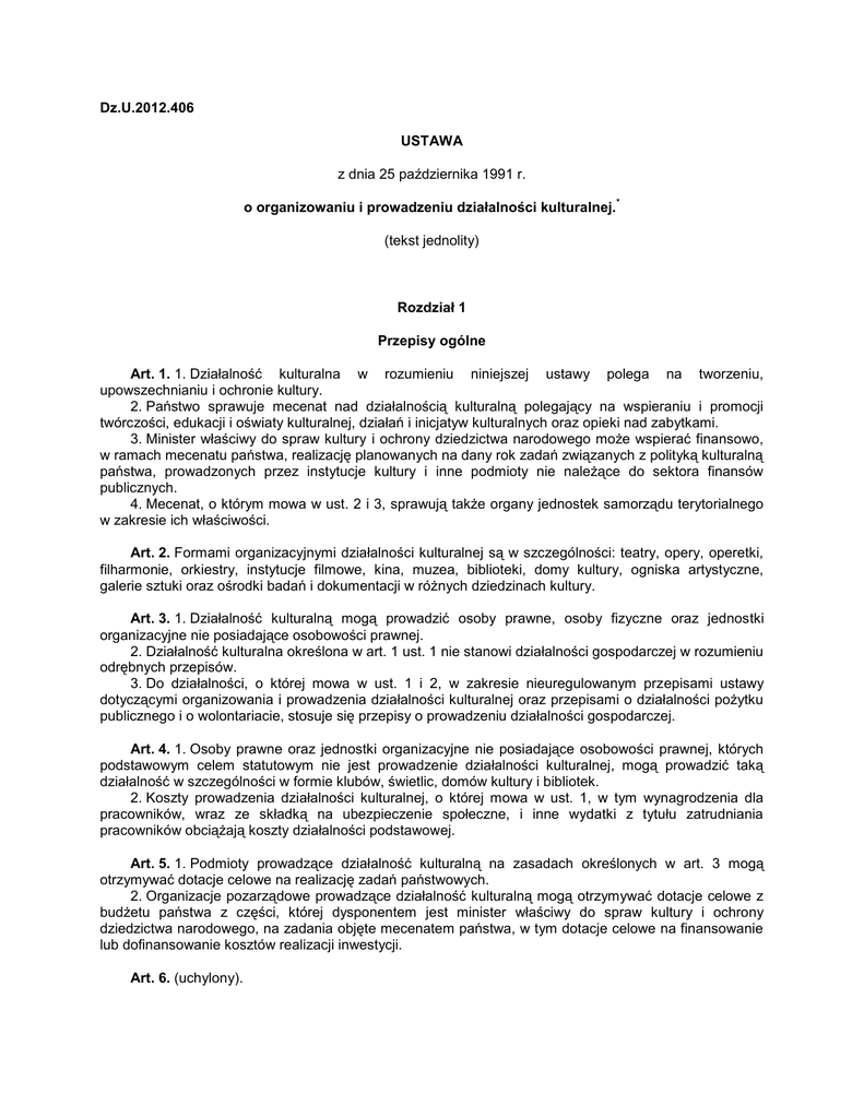 Ustawa o organizowaniu i prowadzeniu działalności kulturalnej tekst