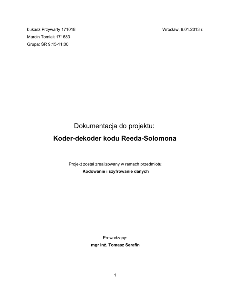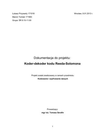 Dokumentacja do projektu: Koderdekoder kodu ReedaSolomona