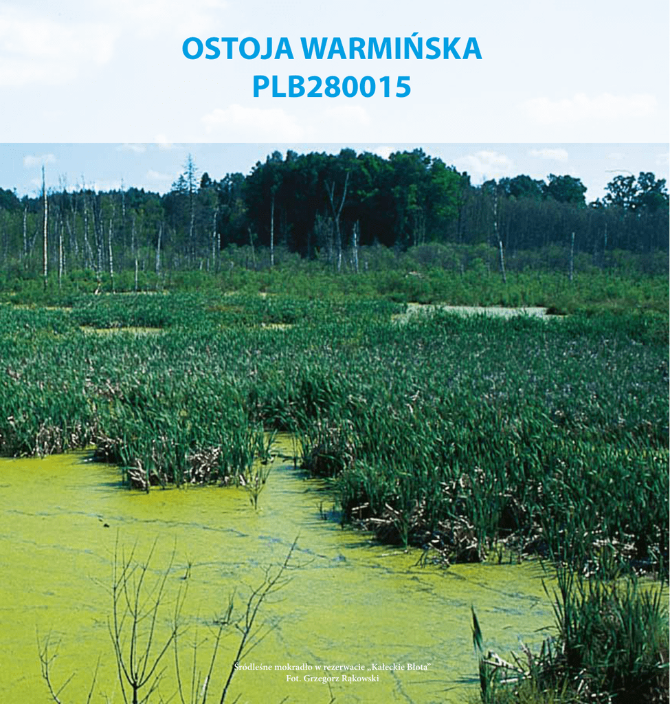 OSTOJA WARMIŃSKA PLB280015 Śródleśne mokradło w rezerwacie „Kałeckie Błota” Fot. Grzegorz Rąkowski Obszar, należący do największych obszarów Natura 2000 w kraju, jest położony w północnej części województwa warmińsko-mazurskiego i ciągnie się pasem długości ok. 115 km i szerokości 10–20 km wzdłuż granicy państwowej z obwodem kaliningradzkim Federacji Rosyjskiej. Na wschodzie omawiany obszar sięga jeziora Oświn, na zachodzie zaś – okolic Braniewa. Środkowa część obszaru leży na Równinie Sępopolskiej, stanowiącej rozległą, bezjezierną i w znacznej części wylesioną nieckę. Przez jej środek głęboko wciętą doliną płynie rzeka Łyna, która w rejonie granicy państwowej rozlewa się w wydłużone jezioro zaporowe. W zachodniej części obszaru znajduje się silnie pofałdowany i w znacznej części zalesiony region Wzniesień Górowskich, które tworzą wzniesienia moreny czołowej z kulminacją Góry Zamkowej (216 m n.p.m.). Najbardziej wysunięta na zachód część obszaru jest położona na Nizinie Warmińskiej, którą przecinają niewielkie rzeki płynące głębokimi wąwozami. Na omawianym terenie znajduje się kilka stosunkowo niedużych jezior naturalnych, z których największe są jeziora: Kinkajmskie (95 ha), Głębockie (91 ha) i Arklickie (58 ha), oraz kilka niewielkich kompleksów stawów rybnych. Liczne są natomiast torfowiska oraz niewielkie śródpolne i śródleśne mokradła. Ponad połowę powierzchni obszaru zajmują intensywne uprawy rolne, znaczną powierzchnię zajmują także użytki zielone. W rejonie przygranicznym część dawnych użytków rolnych leży odłogiem, a część w ostatnich latach zalesiono. Lasy pokrywają łącznie około 25% powierzchni obszaru. W większości są to dobrze zachowane fragmenty grądów z partiami starodrzewu. Wzdłuż dolin cieków ciągną się lasy łęgowe, występują też bory sosnowe i brzeziny bagienne. W granicach obszaru znalazły się fragmenty obszarów chronionego krajobrazu: Rzeki Banówki, Rzeki Wałszy, Wzniesień Górowskich, Doliny Elmy, Doliny Dolnej Łyny, Doliny rzeki Guber i Jeziora Oświn oraz 3 rezerwaty przyrody: „Jezioro Martwe” (17,30 ha), „Bajory” (216,37 ha) i „Kałeckie Błota” (186,48 ha), a także siedliskowy obszar Natura 2000 Bieńkowo PLH280009 (122,70 ha). Zachowaniu i utrzymaniu siedlisk cennych gatunków ptaków w Ostoi Warmińskiej sprzyja przede wszystkim obecność znacznych obszarów ekstensywnie użytkowanych łąk, pastwisk i mokradeł oraz niewielka gęstość zaludnienia terenów przygranicznych, które znalazły się w jej obrębie. Do największych zagrożeń awifauny i jej siedlisk na omawianym obszarze należą: stałe zmniejszanie się powierzchni użytków zielonych w wyniku ich zarastania, zalesiania (zwłaszcza w pasie przygranicznym) bądź zamiany na pola orne, intensyfikacja rolnictwa i wprowadzanie wielkoprzestrzennych upraw monokulturowych, chemizacja rolnictwa i eutrofizacja zbiorników wodnych, likwidacja śródpolnych mokradeł i zadrzewień oraz przesuszenie siedlisk mokradłowych. Kolonia bocianów we wsi Żywkowo Fot. Grzegorz i Tomasz Kłosowscy Ostoja Warmińska jest największą w Polsce ostoją lęgową bociana białego Ciconia ciconia (800–900 par lęgowych, ponad 2% ogólnokrajowej populacji lęgowej), a także jedną z głównych krajowych ostoi lęgowych łabędzia krzykliwego Cygnus cygnus (2–3 pary lęgowe, ok. 4% ogólnokrajowej populacji lęgowej), orlika krzykliwego Aquila pomarina (90–110 par lęgowych, ok. 5% ogólnokrajowej populacji lęgowej), żurawia Grus grus (300– 400 par lęgowych, ponad 2% ogólnokrajowej populacji lęgowej) i derkacza Crex crex (600–800 odzywających się samców, ponad 1% ogólnokrajowej populacji lęgowej). Jest to również bardzo ważna ostoja lęgowa ptaków drapieżnych, gniazduje tu bowiem 5 rzadkich gatunków z tej grupy, umieszczonych w polskiej Czerwonej Księdze zwierząt. Na uwagę zasługuje także stosunkowo znaczna liczebność gniazdujących na omawianym obszarze populacji bociana czarnego Ciconia nigra (15–20 par lęgowych, ok. 1% ogólnokrajowej populacji lęgowej), łabędzia niemego Cygnus olor (90–100 par lęgowych, ponad 1% ogólnokrajowej populacji lęgowej), gągoła Bucephala clangula (20–30 par lęgowych, ok. 2% ogólnokrajowej populacji lęgowej), nurogęsia Mergus merganser (15–20 par lęgowych, blisko 2% ogólnokrajowej populacji lęgowej), błotniaka stawowego Circus aeruginosus (60–80 par lęgowych, ponad 1% ogólnokrajowej populacji lęgowej), błotniaka łąkowego Circus pygargus (15–30 par lęgowych, ponad 1% ogólnokrajowej populacji lęgowej), zimorodka Alcedo atthis (40–60 par lęgowych, ok. 1% ogólnokrajowej populacji lęgowej), dzięcioła zielonosiwego Picus canus (20–30 par lęgowych, ok. 1% ogólnokrajowej populacji lęgowej) i dzięcioła białogrzbietego (10–15 par lęgowych, ponad 2% ogólnokrajowej populacji lęgowej). Powierzchnia: 145 342,00 ha Rok zatwierdzenia: 2004 (obszar powiększony w 2007 i 2011 r.) Regiony geograficzne: Nizina Staropruska, Pobrzeże Gdańskie Mezoregiony: Nizina Sępopolska, Wzniesienia Górowskie, Równina Warmińska Położenie administracyjne: województwo warmińskomazurskie, powiaty braniewski, bartoszycki, kętrzyński i węgorzewski Sprawujący nadzór nad obszarem: Regionalna Dyrekcja Ochrony Środowiska w Olsztynie ul. Dworcowa 60 10-437 Olsztyn tel: 89 537 21 00, fax: 89 527 04 23 e-mail: [email protected] www.olsztyn.rdos.gov.pl Dane Bazy Danych Ogólnogeograficznych, będące treścią niniejszego opracowania, są materiałem państwowego zasobu geodezyjnego i kartograficznego, prowadzonego przez Głównego Geodetę Kraju na podstawie przepisów ustawy Prawo geodezyjne i kartograficzne. Osoby korzystające z tych materiałów nie mają prawa do ich zwielokrotniania, sprzedawania, udostępniania lub w inny sposób wprowadzania do obrotu lub roz