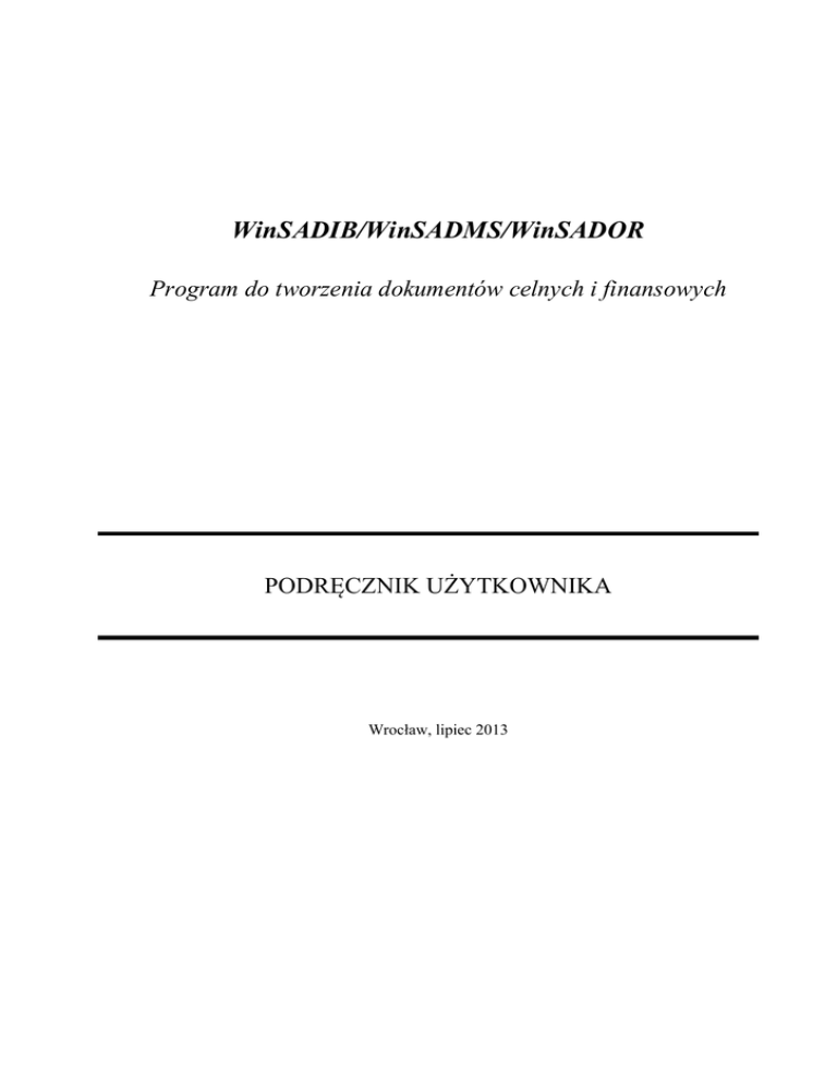 programów do programu WinSADIB/MS i na ich podstawie przygotować dokument SAD. W podobny sposób można