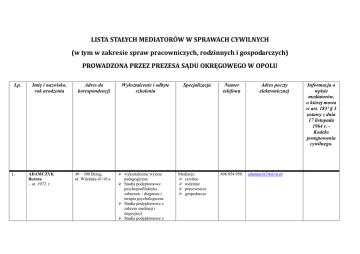 LISTA STAŁYCH MEDIATORÓW W SPRAWACH CYWILNYCH (w