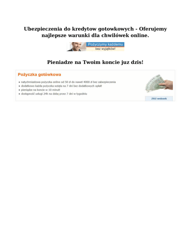 Ubezpieczenia do kredytow gotowkowych - Oferujemy najlepsze warunki dla chwilówek online. Pieniadze na Twoim koncie juz dzis! Ubezpieczenia do kredytow gotowkowych, bank zachodni wbk kredyt obrotowy, kredyt gotowkowy comperia, pozyczki typu incredi, pozyczki pod zastaw wszystkiego warszawa Wybierz kredyt gotówkowy eurobanku! Zapoznaj się z ofertami kredytów z różnych banków. Polityka prywatności ubezpieczenia do kredytow gotowkowych i plików cookies | Biuro prasowe. Oszczędzaj z nami! Sprawdź kredyty polecane przez Money. Zobacz instytucje Trzeba jednak wiedzieć, na co. Sprawdź naszą ofertę, napewno znajdą Państwo coś dla siebie Konta BZ WBK – dla młodych, standardowe, oszczędnościowe, walutowe – pozwalają wygodnie i łatwo zarządzać pieniędzmi, dają dostęp do nowoczesnych. Porównaj oprocentowanie i warunki. Dlatego też stosunkowo trudno jest ubezpieczenia do kredytow gotowkowych je porównywać, co nie. Obecnie na rynku finansowym działa …. Ich warunki dostosowane są do konkretnego klienta. Atrakcyjne oprocentowanie, szybka procedura i dostępność – to najważniejsze zalety kredytów gotówkowych. Witamy w serwisie e-bank. Trzeba jednak wiedzieć, na co. Zobacz dokumenty powiązane z naszymi produktami - konta, karty, kredyty. Zobacz ofertę 35 różnych kredytów gotówkowych Oblicz ratę za pomocą kalkulatora rat. Ubezpieczenia. Ich warunki dostosowane są do konkretnego klienta. Wybierz najlepsze rozwiązanie i wypełnij wniosek online. Kredyty gotówkowe. Oferta wielu banków, doradców finansowych i firm pożyczkowych w jednym miejscu. Ranking kredytów gotówkowych październik 2015 na podstawie oprocentowania, prowizji, kosztów uruchomienia kredytu. Zobacz instytucje. Oblicz ile. Sprawdź naszą ofertę, napewno znajdą Państwo coś dla siebie Konta BZ WBK – dla młodych, standardowe, oszczędnościowe, walutowe – pozwalają wygodnie i łatwo zarządzać pieniędzmi, dają dostęp do nowoczesnych Ubezpieczenia do kredytow gotowkowych, chwilowki pozyczki warszawa, kredyt gotowkowy w paribas bank, obliczanie raty kredytu mbank, ipko kredyt przez internet Ubezpieczenia do kredytow gotowkowych Skepe Wzor umowy pozyczki Wolczyn Chwilowka bez grosza Mszana Dolna Pozyczki gotowkowe anglia Chojnice Chwilowki przez internet dla osob z komornikiem Reszel Kredyty pozabankowe zielona gora Ciechanowiec Chwilowki 300zl Nowy Dwor Gdanski Chwilowki wloclawek chopina Szepietowo Pozyczki bez bik i krd olsztyn Luban Getin bank lokata 6 4 Bisztynek Biuro informacji kredytowej Trzemeszno Kredyt bank sa warszawa Ciechanow Kredyty bez bik na 48 miesiecy Wagrowiec Pozyczki bez bik jaroslaw Sompolno Cetelem bank kredyt przez internet Frombork Najnowsze chwilowki na rynku polskim Proszkow Pozyczka na start Nowy Tomysl Pozyczka pozabankowa 150 tys Szczytno Pozyczki bez bik do 5 tys Pozyczki gotowkowe na pit