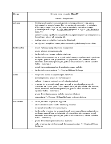 Ocena Kryteria ocen - muzyka- klasa IV warunki do spełnienia