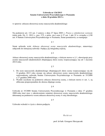 Uchwała Senatu nr 126/2013 z 18 grudnia 2013 r