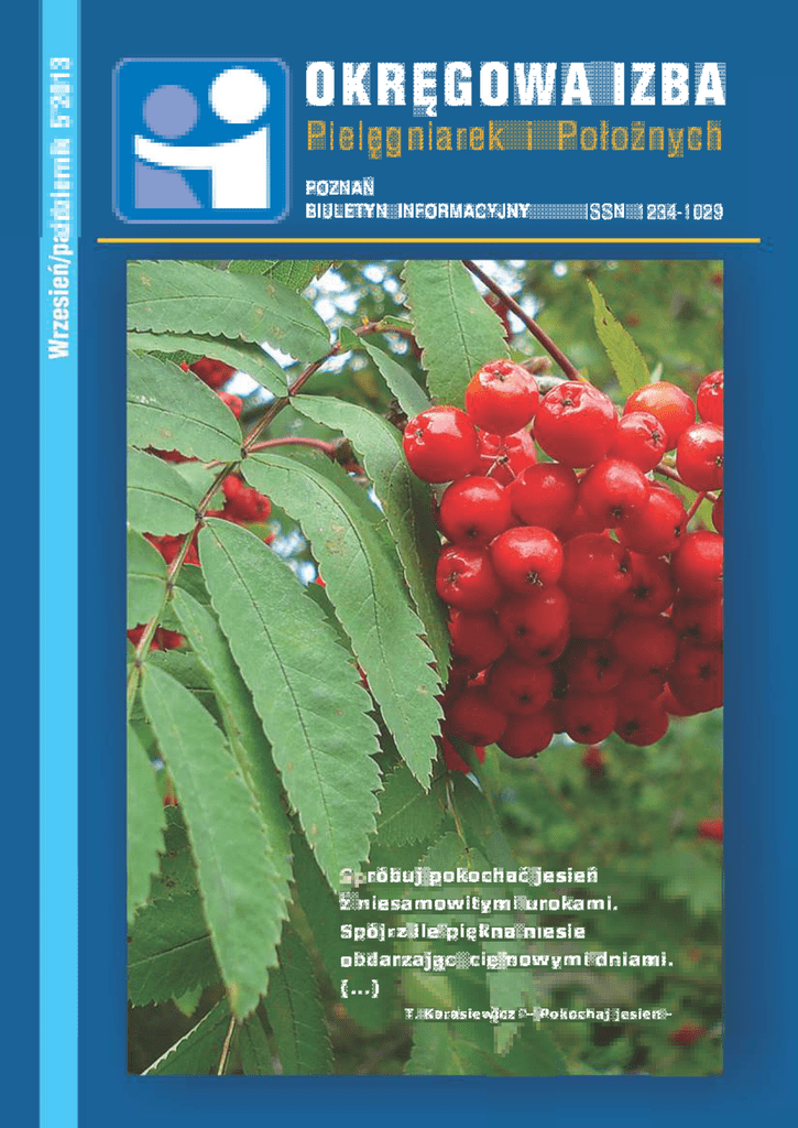 OKRĘGOWA IZBA Pielęgniarek i Położnych POZNAŃ BIULETYN INFORMACYJNY ISSN 1234-1029 róbuj pokochać jesień i niesamowitymi urokami. Spójrz i l e piękna n i e s i e obdarzając cię n o w y m i dniami. ( . . . ) T. Kara s i e w c e ? / - Pokochaj jesień - MOIM ZDANIEM Studia Pomostowe 1 Uchwały Naczelnej Rady Pielęgniarek i Położnych 2 Spotkanie na szczycie... Samorządności 3-4 Bezpłatne studia 5-6 Interpelacje poselskie Pani Poseł K. Łybackiej 7-9 OPINIE KONSULTANTA KRAJOWEGO Okręgowa Izba Pielęgniarek i Położnych ul. Grunwaldzka 65, 60-311 Poznań www.oipip-poznan.pl [email protected] tel. 6 1 8 6 2 0 9 5 0 fax 618620951 tel. 6 1 8 6 2 0 9 5 4 , 6 1 8 6 2 0 9 5 5 tel. 6 1 8 6 2 0 9 5 3 e-mail: sekretariat: rejestr: księgowość: Bank 50 Zachodni 1090 WBK 1359 I I I Oddział 0000 0000 Poznań 3501 8602 Podawanie przez pielęgniarki środków kontrastowych 10 Podawanie leków odczulających 10 Wykonywanie zabiegów z medycyny i dermatologii estetycznej 10 Konsultant Wojewódzki w dziedzinie pielęgniarstwa operacyjnego i chirurgicznego 11 Bezpłatne szkolenia podyplomowe a podatek dochodowy 12-13 Współczesne pielęgniarstwo operacyjne w Polsce-rozwój i integracja 14-15 Wydarzenia 16 Protokół posiedzenia Komisji Refundacji 17 Komunikat 17 Gratulacje 17 Wiceprzewodniczący Okręgowej Rady - TomaszKaczmarek - poniedziałki i ś r o d y g o d z . 1 4 . 0 0 - 1 9 . 0 0 Biuro Sekretariat OlPiP P r z y j m o w a n i e i w y d a w a n i e wniosków o refundację, p o m o c socjalną Okręgowy Rzecznik Odpowiedzialności Z a w o d o w e j - Magdalena Krajewska - p o n i e d z i a ł k i , w t o r k i i piątki w g o d z . 8 . 0 0 - 1 6 . 0 0 oraz środy i c z w a r t k i 1 0 . 0 0 - 1 8 . 0 0 - Katarzyna Zastępcy Okręgowego Walas-Grossmann Rzecznika: B a r b a r a K u l e s z a , Wiesława P i o t r o w s k a , Dział P r a w a W y k o n y w a n i a Z a w o d u Barbara Stefaniak, Renata Szafranek, P r z y j m o w a n i e wniosków i w y d a w a n i e zaświadczeń o p r a w i e Katarzyna Kaja w y k o n y w a n i a z a w o d u oraz zezwoleń na w y k o n y w a n i e i n  Dyżury I I i I V środa miesiąca d y w i d u a l n e j / g r u p o w e j p r a k t y k i pielęgniarek i położnych - poniedziałek-piątek w g o d z . Okręgowy Sąd 7.30-16.00 - A g n i e s z k a U r b a n i a k , A n n a P i e k a r s k a , E s t e r a Stanisławiak P r z e w o d n i c z ą c a - M a ł g o r z a t a Pięt Członkowie - M a r z e n a B a n a c h , Małgorzata Księgowość Gawlik, E w a - czynna pn. 13.00-19.00, w t . 8.00-15.00 i 15.30-19.00 Kusztal, Alla Rejniak, Maria C h m i e l e w s k a , Elżbieta Mikołajewska Dyżury I i I I I środa miesiąca śr. 1 2 . 0 0 - 1 9 . 0 0 , c z w . 1 5 . 3 0 - 1 8 . 3 0 - Danuta Skorys - Elżbieta M a ł g o r z a t a W a l i g ó r a Okręgowa Komisja Rewizyjna Przewodnicząca - T e r e s a Przewoźna Kasa Członkowie - D a n u t a B u d n a , E m i l i a M a r c i n k o w  - c z y n n a c o d z i e n n i e (oprócz s o b ó t ) w g o d z . 8 . 3 0 - 1 5 . 3 0 s k a , B e a t a S k o k o w s k a , Mirosława S k r z y p c z a k , Jadwiga Drabowicz, RenataWitkowska Radca Prawny OIPIP Udziela p o r a d w z a k r e s i e p r a w a p r a c y oraz przepisów Dział M e r y t o r y c z n y O l P i P związanych z w y k o n y w a n i e m z a w o d u pielęgniarki/po - Teresa łożnej Wiśniewska - Małgorzata N o s a l - poniedziałek-piątek w czwartki od godz. 17.00-18.00 7.30-16.00 po u p r z e d n i m u z g o d n i e n i u t e l e f o n i c z n y m ( 6 1 8 6 2 0 9 5 0 ) MOIM ZDANIEM MOIM ZDANIEM S T U D I A POMOSTOWE NA F I N I S Z U , GNIARKOM I POŁOŻNYM W I A T R W OCZY W r o k u a k a d e m i c k i m 2 0 1 3 / 2 0 1 4 k o l e j n y raz umożliwiono pielęgniarkom i położnym s k o  rzystać z n i e o d p ł a t n y c h s t u d i ó w p o m o s t o w y c h , k t ó r y c h c e l e m j e s t u z u p e ł n i e n i e w y k s z t a ł c e  nia z a w o d o w e g o i a k t u a l i z a c j a z d o b y t e j wcześniej w i e d z y , z g o d n e j z w y m o g a m i kształcenia n a o b s z a r z e całej U n i i E u r o p e j s k i e j . S t u d i a p o m o s t o w e d l a pielęgniarek i położnych r e a l i z o w a n e są w r a m a c h Systemowego P r o j e k t u f i n a n s o w a n e g o z E u r o p e j s k i e g o Funduszu Społecznego w z a k r e s i e P r o g r a m u r a c y j n e g o Kapitał L u d z k i o d 2 0 0 8 r o k u i s z a c u j e się, że d o 2 0 1 5 r o k u Ope wykształcenie uzupeł ni około 2 5 tysięcy pielęgniarek i położnych. Z a p o t r z e b o w a n i e n a t a k i r o d z a j e d u k a c j i o k a z a ł o się t a k d u ż e , ż e D e p a r t a m e n t P i e l ę g n i a  r e k i Położnych zaplanował w r a m a c h p o s i a d a n y c h j e s z c z e środków f i n a n s o w y c h zorganizo w a ć n a b ó r d o d a t k o w y n a r o k a k a d e m i c k i 2 0 1 3 / 2 0 1 4 i z w i ę k s z y ć liczbę p r z y s z ł y c h a b s o l w e n  tów n a w e t d o 3 4 tysięcy na k i e r u n k a c h - pielęgniarstwo i położnictwo. Z n a k o m i t a w i ę k s z o ś ć u c z e l n i m e d y c z n y c h w P o l s c e została u c z e s t n i k a m i p r o j e k t u n a o b u t y c h k i e r u n k a c h , j e d n a k niektóre j e d n o s t k i o g r a n i c z y ł y się z n i e w i a d o m y c h w z g l ę d ó w t y l k o d o p i e l ę g n i a r s t w a c h o c i a ż z a i n t e r e s o w a n i e z e s t r o n y p o ł o ż n y c h r ó w n i e ż było z n a c z n e . W s z y s t k o j a w i ł o się p r o m i e n n i e , r e k l a m a o k a z a ł a się s k u t e c z n a , D e p a r t a m e n t o r a z N a c z e l  n a I z b a P i e l ę g n i a r e k i Położnych w r a z z O k r ę g o w y m i I z b a m i o k a z y w a ł y s w ą p o m o c i z a a n  gażowanie w czasie r o z p o w s z e c h n i a n i a i n f o r m a c j i o s t u d i a c h , z a i n t e r e s o w a n e o s o b y zaczęły z g ł a s