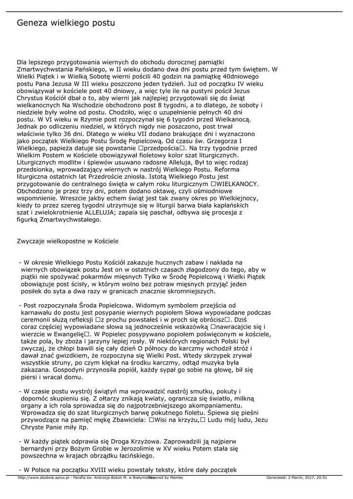 Geneza wielkiego postu - Parafia św. Andrzeja Boboli – w Białymstoku