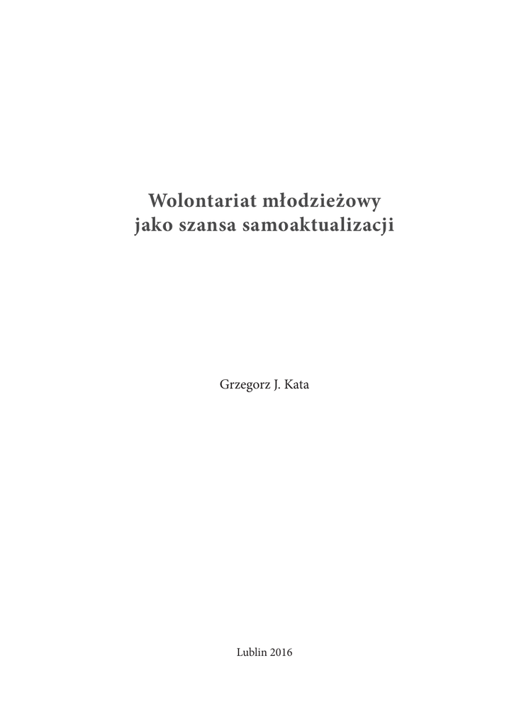 Wolontariat młodzieżowy jako szansa samoaktualizacji Grzegorz J. Kata Lublin 2016 Wyższa Szkoła ekonomii i Innowacji w Lublinie Seria wydawnicza: Monografie Wydziału Pedagogiki i Psychologii Wyższej Szkoły Ekonomii i Innowacji w Lublinie Grzegorz Kata Wolontariat młodzieżowy jako szansa samoaktualizacji Recenzenci: prof. dr hab. Zbigniew B. Gaś (WSEI) dr hab. Krzysztof Ostaszewski (IPiN) © Copyright by Innovatio Press Wydawnictwo Naukowe Wyższej Szkoły Ekonomii i Innowacji w Lublinie Wszelkie prawa zastrzeżone. Kopiowanie, przedrukowywanie i rozpowszechnianie całości lub fragmentów niniejszej pracy bez zgody wydawcy zabronione. Skład, łamanie i projekt okładki: Paweł Kremer – ChapterOne.com.pl Zdjęcie na okładce: © yanlev-Fotolia Printed in Poland Innovatio Press Wydawnictwo Naukowe Wyższej Szkoły Ekonomii i Innowacji 20-209 Lublin, ul. Projektowa 4 tel.(81) 749 17 77, fax (81) 749 32 13 www.wsei.lublin.pl ISBN 978-83-64527-46-3 Spis treści Wprowadzenie . . . . . . . . . . . . . . . . . . . . . . . . . . . . . . . . . . . . . 7 1. Wolontariat młodzieżowy . . . . . . . . . . . . . . . . . . . . . . . . . . . . 11 1.1. Istota wolontariatu młodzieżowego . . . . . . . . . . . . . . . . . . . . . . . 13 1.2. Wolontariat jako szansa samoaktualizacji . . . . . . . . . . . . . . . . . . . 24 1.3. Przegląd badań młodzieżowych wolontariuszy . . . . . . . . . . . . . . . . 34 2. Samoaktualizacja jako proces osiągania pełnej dojrzałości . . . . . . . . . 41 2.1. Samoaktualizacja w różnych kierunkach psychologicznych . . . . . . . . . . 43 2.2. Samoaktualizacja w ujęciu humanistycznym . . . . . . . . . . . . . . . . . 58 2.3. Samoaktualizacja według Abrahama Maslowa. . . . . . . . . . . . . . . . . 65 3. Metodologia badań własnych . . . . . . . . . . . . . . . . . . . . . . . . . . 79 3.1. Problem badawczy i hipotezy . . . . . . . . . . . . . . . . . . . . . . . . . . 80 3.2. Charakterystyka badanych osób . . . . . . . . . . . . . . . . . . . . . . . . 85 3.3. Narzędzia badawcze . . . . . . . . . . . . . . . . . . . . . . . . . . . . . . . 91 3.4. Procedura badawcza . . . . . . . . . . . . . . . . . . . . . . . . . . . . . . . 98 3.5. Procedury statystycznej analizy danych . . . . . . . . . . . . . . . . . . . . . 99 4. Charakterystyka psychologiczna wolontariuszy młodzieżowych o różnym poziomie samoaktualizacji . . . . . . . . . . . . . . . . . . . . . . 101 4.1. Realny obraz siebie wolontariuszy młodzieżowych o różnym poziomie samoaktualizacji . . . . . . . . . . . . . . . . . . . . . . . . . . . . . . . . 102 4.2. Idealny obraz siebie wolontariuszy młodzieżowych o różnym poziomie samoaktualizacji . . . . . . . . . . . . . . . . . . . . . . . . . . . . . . . . 109 4.3. Tendencje rozwojowe wolontariuszy młodzieżowych o różnym poziomie samoaktualizacji . . . . . . . . . . . . . . . . . . . . . . . . . . . . . . . . 4.4. Samoakceptacja wolontariuszy młodzieżowych o różnym poziomie samoaktualizacji . . . . . . . . . . . . . . . . . . . . . . . . . . . . . . . . 4.5. Struktura systemu wartości wolontariuszy młodzieżowych o różnym poziomie samoaktualizacji . . . . . . . . . . . . . . . . . . . . . . . . . . . 4.6. Poczucie autonomii wolontariuszy młodzieżowych o różnym poziomie samoaktualizacji . . . . . . . . . . . . . . . . . . . . . . . . . . . . . . . . 4.7. Uspołecznienie wolontariuszy młodzieżowych o różnym poziomie samoaktualizacji . . . . . . . . . . . . . . . . . . . . . . . . . . . . . . . . 112 117 118 120 121 5. Jakość funkcjonowania w roli u wolontariuszy młodzieżowych o różnym poziomie samoaktualizacji . . . . . . . . . . . . . . . . . . . . . . . . . . . . 125 5.1. Obraz siebie w roli wolontariusza . . . . . . . . . . . . . . . . . . . . . . . 5.2. Obraz idealnego wolontariusza . . . . . . . . . . . . . . . . . . . . . . . . 5.3. Obraz osoby wspomaganej przez wolontariuszy . . . . . . . . . . . . . . . 5.4. Samoocena kompetencji istotnych w pracy jako wolontariusz i potrzeba ich rozwoju . . . . . . . . . . . . . . . . . . . . . . . . . . . . . . . . . . . . 5.5. Motywacja do pracy w roli wolontariusza . . . . . . . . . . . . . . . . . . 5.6. Znajomość praw wolontariusza . . . . . . . . . . . . . . . . . . . . . . . . 5.7. Zaangażowanie i satysfakcja z pracy wolontariuszy . . . . . . . . . . . . . 125 134 145 152 157 159 160 6. Podsumowanie analiz i dyskusja wyników . . . . . . . . . . . . . . . . . . 165 Zakończenie . . . . . . . . . . . . . . . . . . . . . . . . . . . . . . . . . . . . . 175 Bibliografia . . . . . . . . . . . . . . . . . . . . . . . . . . . . . . . . . . . . . . 179 Ankes . . . . . . . . . . . . . . . . . . . . . . . . . . . . . . . . . . . . . . . . . 189 Inwentarz WLNT . . . . . . . . . . . . . . . . . . . . . . . . . . . . . . . . . . . 191 Voluntary Function Inventory (VFI) . . . . . . . . . . . . . . . . . . . . . . . .195 Dla mojej żony Aleksandry i naszych córek Antoniny i Zofii Wprowadzenie Pomoc drugiemu człowiekowi, poświęcanie na jego rzecz czasu i posiadanych zasobów, jest czymś naturalnym i powszechnym w każdej społeczności. Aktywność tego rodzaju motywowana jest ogólną satysfakcją czerpaną z bycia pomocnym i potrzebnym. U podłoża tej satysfakcji leży m.in. możliwość dostrzegania zmian w jakości cudzego życia, radość z samej aktywności, próby zaradzania problemem społecznym, uznanie ze strony innych oraz szansa na osobisty rozwój. Ten ostatni czynnik – rozwój osobisty – znalazł miejsce w rozważaniach filozofów, którzy źródeł osobistego szczęścia i doskonalenia upatrywali właśnie w pomaganiu innym. Współcześnie bezinteresowna pomoc często przyjmuje postać pracy wolontariackiej. Jest ona podstawą działalności wielu organizacji prospołecznych i charytatywnych oraz formą dodatkowej aktywności około 32% mieszkańców Europy (Meier i Stutzer, 2008). Wolontariat jest przedmiotem zainteresowania wielu dyscyplin naukow