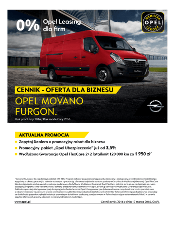 Opel Movano Furgon cennik 2016