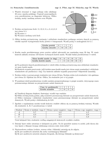 14. Statystyka i kombinatoryka mgr A. Piłat, mgr M