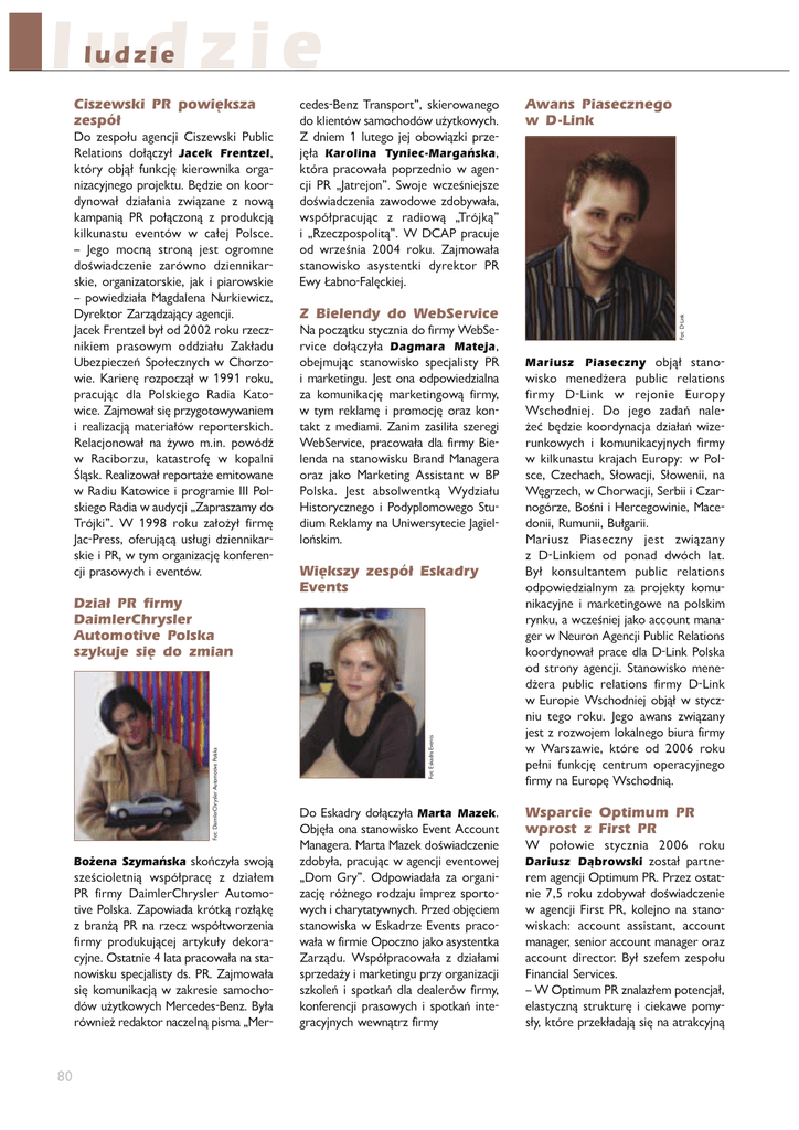 ludzie ludzie /Z eP^[Zč` LRPYNUT .T^ePb^VT ;`MWTN =PWL_TZY^ OZčÙNedč Jacek Frentzel V_Ç]d ZMUÙč Q`YVNUí VTP]ZbYTVL Z]RL YTeLNdUYPRZ []ZUPV_` -íOeTP ZY VZZ] OdYZbLč OeTLčLYTL ebTÙeLYP e YZbÙ VLX[LYTÙ ;= [ZčÙNeZYÙ e []ZO`VNUÙ VTWV`YL^_` PaPY_Çb b NLčPU ;ZW^NP w 5PRZ XZNYÙ ^_]ZYÙ UP^_ ZR]ZXYP OZĦbTLONePYTP eL]ÇbYZ OeTPYYTVL] ^VTP Z]RLYTeL_Z]^VTP ULV T [TL]Zb^VTP w [ZbTPOeTLčL 8LROLWPYL 9`]VTPbTNe /d]PV_Z] EL]eÙOeLUÙNd LRPYNUT 5LNPV1]PY_ePWMdčZO]ZV`]ePNe YTVTPX []L^ZbdX ZOOeTLč` ELVčLO` @MPe[TPNePď >[ZčPNeYdNS b .SZ]eZ bTP 6L]TP]í ]Ze[ZNeÙč b $$ ]ZV` []LN`UÙN OWL ;ZW^VTPRZ =LOTL 6L_Z bTNPELUXZbLč^Tí[]edRZ_ZbdbLYTPX T ]PLWTeLNUÙ XL_P]TLčÇb ]P[Z]_P]^VTNS =PWLNUZYZbLč YL ŇdbZ XTY [ZbÇOŅ b =LNTMZ]e` VL_L^_]ZQí b VZ[LWYT ĥWÙ^V=PLWTeZbLč]P[Z]_LŇPPXT_ZbLYP b =LOT` 6L_ZbTNP T []ZR]LXTP 444 ;ZW ^VTPRZ=LOTLbL`OdNUTkEL[]L^eLXdOZ ?]ÇUVTu B $$# ]ZV` eLčZŇdč QT]Xí 5LN;]P^^ ZQP]`UÙNÙ `^č`RT OeTPYYTVL] ^VTPT;=b_dXZ]RLYTeLNUíVZYQP]PY NUT []L^ZbdNS TPaPY_Çb NPOP^-PYe ?]LY^[Z]_u ^VTP]ZbLYPRZ OZVWTPY_Çb^LXZNSZOÇb`Ňd_VZbdNS E OYTPX W`_PRZ UPU ZMZbTÙeVT []eP UíčL Karolina Tyniec-Margańska V_Ç]L []LNZbLčL [Z[]ePOYTZ b LRPY NUT ;= k5L_]PUZYu >bZUP bNePĦYTPU^eP OZĦbTLONePYTL eLbZOZbP eOZMdbLčL b^[Çč[]LN`UÙN e ]LOTZbÙ k?]ÇUVÙu T k=ePNe[Z^[ZWT_Ùu B /.,; []LN`UP ZO b]ePĦYTL ]ZV` ELUXZbLčL ^_LYZbT^VZ L^d^_PY_VT Od]PV_Z] ;= 0bd ČLMYZ1LWíNVTPU Z Bielendy do WebService 9L[ZNeÙ_V`^_dNeYTLOZQT]XdBPM>P ]aTNP OZčÙNedčL Dagmara Mateja ZMPUX`UÙN ^_LYZbT^VZ ^[PNULWT^_d ;= T XL]VP_TYR` 5P^_ ZYL ZO[ZbTPOeTLWYL eL VZX`YTVLNUí XL]VP_TYRZbÙ QT]Xd b _dX ]PVWLXí T []ZXZNUí Z]Le VZY _LV_ e XPOTLXT ELYTX eL^TWTčL ^eP]PRT BPM>P]aTNP []LNZbLčL OWL QT]Xd -TP WPYOL YL ^_LYZbT^V` -]LYO 8LYLRP]L Z]Le ULVZ 8L]VP_TYR ,^^T^_LY_ b -; ;ZW^VL 5P^_ LM^ZWbPY_VÙ BdOeTLč` 3T^_Z]dNeYPRZ T ;ZOd[WZXZbPRZ >_` OT`X=PVWLXdYL@YTbP]^d_PNTP5LRTPW WZď^VTX Większy zespół Eskadry Events Bożena Szymańska ^VZďNedčL ^bZUÙ ^ePĦNTZWP_YTÙ b^[Çč[]LNí e OeTLčPX ;= QT]Xd /LTXWP].S]d^WP] ,`_ZXZ _TaP ;ZW^VL EL[ZbTLOL V]Ç_VÙ ]ZečÙVí e M]LYŇÙ ;= YL ]ePNe b^[Çč_bZ]ePYTL QT]Xd []ZO`V`UÙNPU L]_dV`čd OPVZ]L NdUYP:^_L_YTPWL_L[]LNZbLčLYL^_L YZbT^V` ^[PNULWT^_d O^ ;= ELUXZbLčL ^Tí VZX`YTVLNUÙ b eLV]P^TP ^LXZNSZ OÇb `Ňd_VZbdNS 8P]NPOP^-PYe -dčL ]ÇbYTPŇ]POLV_Z]YLNePWYÙ[T^XLk8P] # 1Z_%0^VLO]L0aPY_^ 1Z_%/LTXWP].S]d^WP],`_ZXZ_TaP;ZW^VL Dział PR firmy DaimlerChrysler Automotive Polska szykuje się do zmian /Z 0^VLO]d OZčÙNedčL Marta Mazek :MUíčL ZYL ^_LYZbT^VZ 0aPY_ ,NNZ`Y_ 8LYLRP]L8L]_L8LePVOZĦbTLONePYTP eOZMdčL []LN`UÙN b LRPYNUT PaPY_ZbPU k/ZX 2]du :O[ZbTLOLčL eL Z]RLYT eLNUí ]ÇŇYPRZ ]ZOeLU` TX[]Pe ^[Z]_Z bdNSTNSL]d_L_dbYdNS;]ePOZMUíNTPX ^_LYZbT^VL b 0^VLO]eP 0aPY_^ []LNZ bLčLbQT]XTP:[ZNeYZULVZL^d^_PY_VL EL]eÙO` B^[Çč[]LNZbLčL e OeTLčLXT ^[]ePOLŇdTXL]VP_TYR`[]edZ]RLYTeLNUT ^eVZWPď T ^[Z_VLď OWL OPLWP]Çb QT]Xd VZYQP]PYNUT []L^ZbdNS T ^[Z_VLď TY_P R]LNdUYdNSbPbYÙ_]eQT]Xd Awans Piasecznego w D-Link 1Z_%/7TYV Ciszewski PR powiększa zespół Mariusz Piaseczny ZMUÙč ^_LYZ bT^VZ XPYPOŇP]L [`MWTN ]PWL_TZY^ QT]Xd /7TYV b ]PUZYTP 0`]Z[d B^NSZOYTPU /Z UPRZ eLOLď YLWP ŇPÛ MíOeTP VZZ]OdYLNUL OeTLčLď bTeP ]`YVZbdNS T VZX`YTVLNdUYdNS QT]Xd b VTWV`YL^_` V]LULNS 0`]Z[d% b ;ZW ^NP .ePNSLNS >čZbLNUT >čZbPYTT YL BíR]ePNSb.SZ]bLNUT>P]MTTT.eL] YZRÇ]eP -ZĦYT T 3P]NPRZbTYTP 8LNP OZYTT=`X`YTT-`čRL]TT 8L]T`^e ;TL^PNeYd UP^_ ebTÙeLYd e /7TYVTPX ZO [ZYLO ObÇNS WL_ -dč VZY^`W_LY_PX [`MWTN ]PWL_TZY^ ZO[ZbTPOeTLWYdX eL []ZUPV_d VZX` YTVLNdUYP T XL]VP_TYRZbP YL [ZW^VTX ]dYV`LbNePĦYTPUULVZLNNZ`Y_XLYL RP]b9P`]ZY,RPYNUT;`MWTN=PWL_TZY^ VZZ]OdYZbLč []LNP OWL /7TYV ;ZW^VL ZO ^_]ZYd LRPYNUT >_LYZbT^VZ XPYP OŇP]L [`MWTN ]PWL_TZY^ QT]Xd /7TYV b 0`]Z[TP B^NSZOYTPU ZMUÙč b ^_dNe YT` _PRZ ]ZV` 5PRZ LbLY^ ebTÙeLYd UP^_ e ]ZebZUPX WZVLWYPRZ MT`]L QT]Xd b BL]^eLbTP V_Ç]P ZO ! ]ZV` [PčYT Q`YVNUí NPY_]`X Z[P]LNdUYPRZ QT]Xd YL0`]Z[íB^NSZOYTÙ Wsparcie Optimum PR wprost z First PR B [ZčZbTP ^_dNeYTL ! ]ZV` Dariusz Dąbrowski eZ^_Lč [L]_YP ]PXLRPYNUT:[_TX`X;=;]ePeZ^_L_ YTP " ]ZV` eOZMdbLč OZĦbTLONePYTP b LRPYNUT 1T]^_ ;= VZWPUYZ YL ^_LYZ bT^VLNS% LNNZ`Y_ L^^T^_LY_ LNNZ`Y_ XLYLRP]^PYTZ]LNNZ`Y_XLYLRP]Z]Le LNNZ`Y_ OT]PN_Z] -dč ^ePQPX eP^[Zč` 1TYLYNTLW>P]aTNP^ wB:[_TX`X;=eYLWLečPX[Z_PYNULč PWL^_dNeYÙ ^_]`V_`]í T NTPVLbP [ZXd ^čdV_Ç]P[]ePVčLOLUÙ^TíYLL_]LVNdUYÙ ZQP]_í OWL VWTPY_Çb EOZMd_P bNeP ĦYTPU OZĦbTLONePYTP NSNTLčMdX bdVZ ]ed^_LÛ OZ ]ZebZU` YZbdNS ZM^eL]Çb OeTLčLWYZĦNT T [Z^eP]ePYTL M]LYŇZbPRZ OZ]ZMV` LRPYNUT :[_TX`X ;= w XÇbT Z^bZUPU OPNdeUT /L]T`^e /ÙM]Zb^VT :O[ZNeÙ_V`VL]TP]db1T]^_;=MdčZY ebTÙeLYd e M]LYŇÙ QTYLY^ZbZ`MPe[TP NePYTZbÙ;]LNZbLčYL]ePNeVZ][Z]LNUT ,42,42;?0T,42,X[WTNZ7TQPZ]Le ^[ÇčPV e R]`[d 492 B Z^_L_YTX NeL ^TP Mdč ZO[ZbTPOeTLWYd eL b^[Çč[]LNí e 492 9L_TZYLWP 9POP]WLYOPY =LTQQP T^PY EPY_]LWMLYV ,`^_]TL Z]Le 7PSXLY -]Z_SP]^@NeP^_YTNedč]ÇbYTPŇb[]Z UPV_LNS ]PLWTeZbLYdNS XTY OWL /P`_ ^NSP-LYV;ZW^VLT6]POd_-LYV>, Powiększone szeregi Sarto PR 1Z_%;]ZXPOTL Ludzie :WRL3Z]ZOPNVLOZĦbTLONePYTPeLbZ OZbP eOZMdbLčL []ZbLOeÙN bZ]_LW _PWPbTeUT 1L^STZY ?A w MdčL ZO[ZbTP OeTLWYL eL]ÇbYZ eL XL]VP_TYR ULV T ]POLVNUí L _LVŇP [T^eÙN ULVZ Q]PPWLY NP] _PV^_d OWL LRPYNUT ;= T NeL^Z[T^X B ,RPYNUT ;= ;]ZXPOTL MíOeTP ZO[Z bTPOeTLWYL eL V^e_Lč_ZbLYTP bTeP]`YV` QT]XZOeTPŇZbdNS?]T`X[S/TRPW;PWZ L _LVŇP YTPXTPNVTPRZ VZYNP]Y` []ZO` V`UÙNPRZYTNTw,XLYY E [ZNeÙ_VTPX YZbPRZ ]ZV` Joanna Daniluk beXZNYTčL ^VčLO b]ZNčLb ^VTPU LRPYNUT >L]_Z ;`MWTN =PWL_TZY^ ZMPUX`UÙN^_LYZbT^VZ^[PNULWT^_d[`MWTN ]PWL_TZY^ 5ZLYYL/LYTW`V`VZďNedčLQTWZWZRTí[ZW ^VÙ YL @YTbP]^d_PNTP ETPWZYZRÇ]^VTX YL^_í[YTP ;ZOd[WZXZbP >_`OT`X /eTPYYTVL]^_bLTEL]eÙOeLYTL4YQZ]XL NUÙ YL @YTbP]^d_PNTP B]ZNčLb^VTX B NeL^TP ^_`OTÇb [ZOd[WZXZbdNS b^[Çč[]LNZbLčL e RLeP_LXT WZVLWYdXT eTPXT eRZ]ePWPNVTPU YL^_í[YTP e XLRL edYPX OWL XíŇNedeY k8PYv^ 3PLW_Su ;TP]b^eP V]ZVT b M]LYŇd ;= ^_LbTLčL b LRPYNUT 3PLOWTYP^ Noworoczne zmiany w Promedia :O YZbPRZ ]ZV` ^_LY