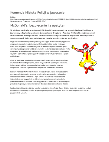 Komenda Miejska Policji w Jaworznie McDonald`s: bezpiecznie i z