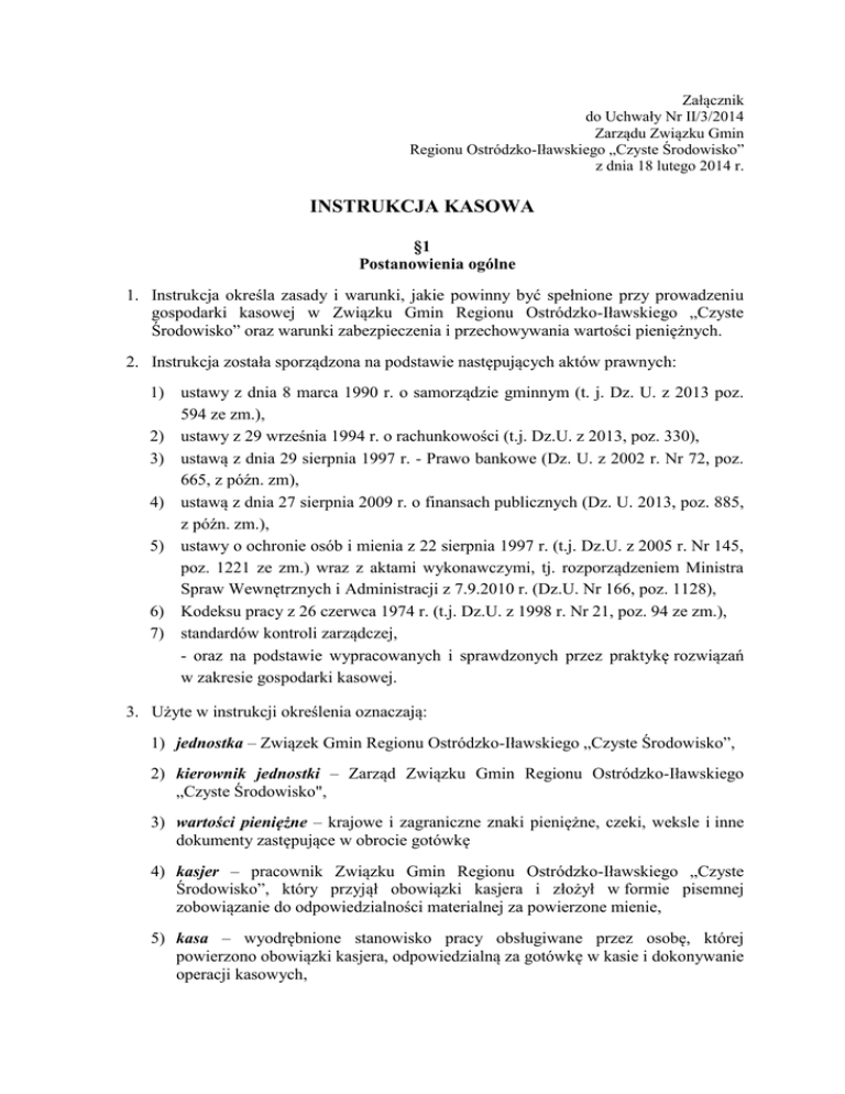 Instrukcja kasowa - Związek Gmin Regionu Ostródzko