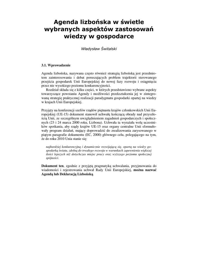 Agenda lizbońska w świetle wybranych aspektów zastosowań