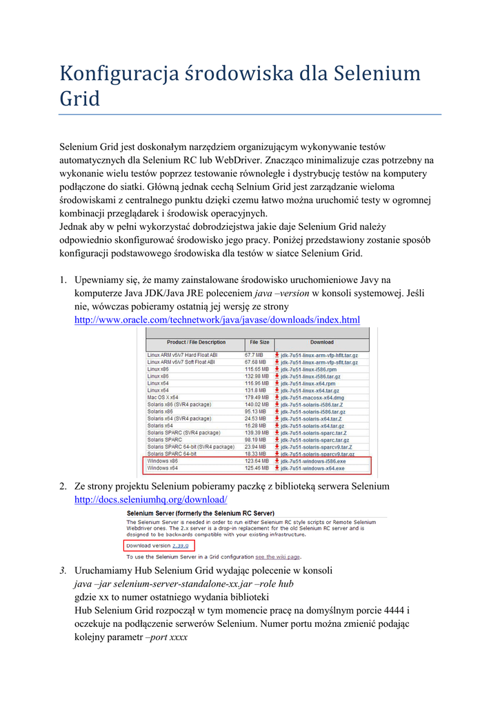 Konfiguracja ś rodowiśka dla Selenium Grid