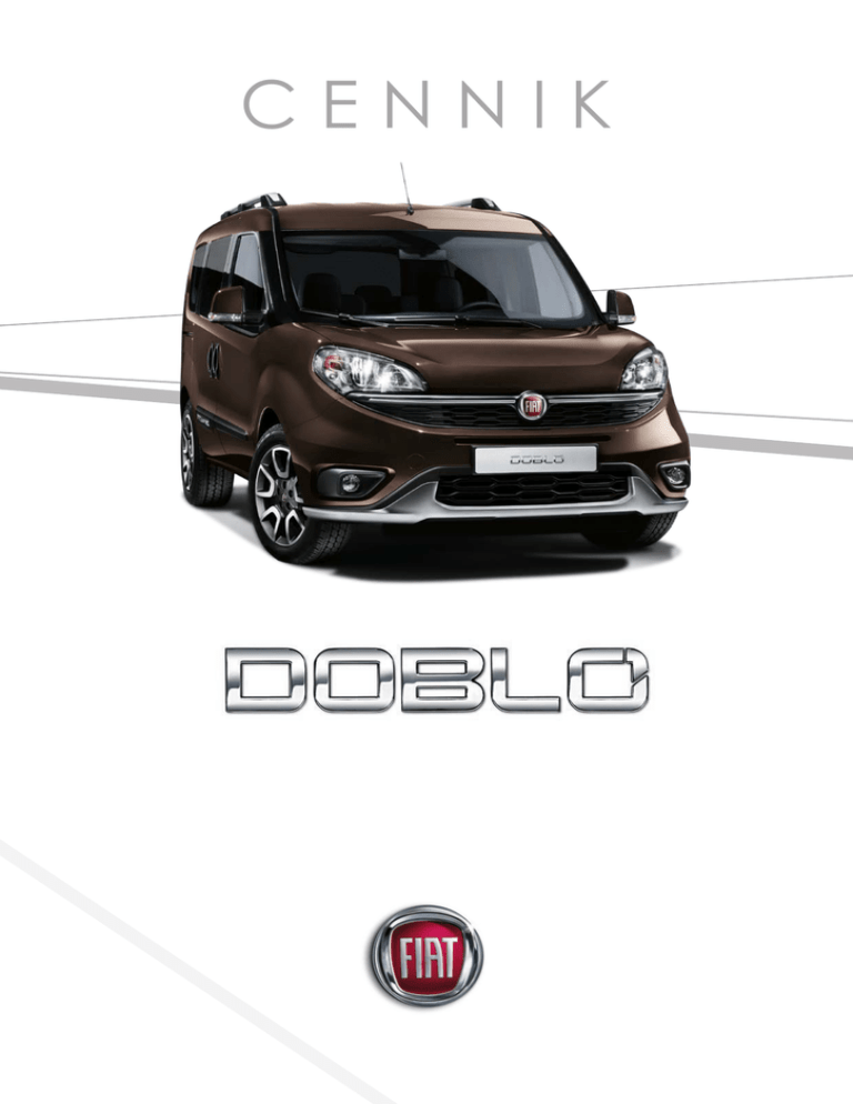CENNIK N o w y Fi a t D o b l ò ROK PRODUKCJI 2017 SILNIKI BENZYNOWE 1.4 16v 95 KM 1.4 T-Jet 16v 120 KM POP EASY LO U N G E TREKKING 58 800 62 800 – – 64 300 68 300 – 68 800 73 800 – 74 300 79 300 79 800 – SILNIKI DIESLA 1.6 Multijet 16v 95 KM – 85 300 1.6 Multijet 16v 120KM – 87 800 93 300 80 800 85 800 88 800 86 300 91 300 94 300 Wszystkie samochody osobowe marki Fiat (z wyłączeniem Sedici) sprzedane od 1.01.2012 i zakupione w punktach sprzedaży dealerów Fiata w Polsce, posiadają 2-letnią gwarancję bez limitu kilometrów. W całym okresie ważności tej gwarancji Klient otrzymuje usługę ASSISTANCE 24h, ważną na terenie całej Europy. Podane informacje na temat gwarancji pojazdu nie stanowią udzielenia kupującemu gwarancji, w szczególności w rozumieniu art. 13 Ustawy z dnia 27 lipca 2002 r. o szczególnych warunkach sprzedaży konsumenckiej oraz o zmianie Kodeksu cywilnego. Gwarancja zostanie udzielona przy sprzedaży pojazdu, a jej warunki zostaną określone w dokumencie gwarancyjnym. Fiat zastrzega sobie prawo do wprowadzenia w dowolnym momencie zmian w modelach opisanych w niniejszym cenniku z powodów natury technicznej lub handlowej. Szczegóły w salonie sprzedaży. Cennik zawiera ceny detaliczne w złotych z VAT. Ceny zawierają podatek akcyzowy. Ceny mogą ulec zmianom bez uprzedniego zawiadomienia w przypadku zmian cen przez producenta, zmian podatkowych, przepisów celnych lub innych przyczyn. Wyposażenie seryjne i dodatkowe poszczególnych modeli może ulegać zmianom w zależności od potrzeb poszczególnych rynków i wymogów prawnych. Dane w niniejszym cenniku mają charakter orientacyjny i nie stanowią oferty w rozumieniu Kodeksu Cywilnego. PAKIETY WYDŁUŻONEJ GWARANCJI MAXIMUM CARE Paleta usług przygotowanych pod kątem Twojego samochodu, zapewniająca, że wszystkie naprawy serwisowe są wykonywane u Dealerów i w Autoryzowanych Stacjach Obsługi marki FIAT w Europie, przez wysoko kwalifikowanych i odpowiednio wyspecjalizowanych techników, z zastosowaniem oryginalnych części zamiennych. Maximum Care jest to najbardziej kompleksowy program Mopar® Vehicle Protection. Zapewnia zabezpieczenie Twojego samochodu przed usterkami komponentów mechanicznych i elektrycznych w zakresie określonym umową, umożliwiając wybór okresu trwania gwarancji w zależności od Twoich potrzeb i preferencji. Do wyboru jest kilka wariantów zależnych od czasu i granicznego przebiegu, które przewidują wydłużenie gwarancji posiadanego pojazdu o: • + 1 rok i do 45 000 lub do 90 000 lub do 120 000 km (opcja – 3 lata gwarancji), • + 2 lata i do 60 000 lub do 120 000 km lub do 160 000 km (opcja – 4 lata gwarancji), • + 3 lata i do 75 000 lub do 150 000 km lub do 200 000 km (opcja – 5 lat gwarancji). LIMIT KILOMETRÓW WARIANT do 3 lat silnik benzynowy do 3 lat silnik Diesla 45 000 90 000 120 000 790 zł 1 390 zł 1 690 zł 790 zł 1 390 zł 1 690 zł do 4 lat silnik benzynowy N o w y Fi a t D o b l ò do 4 lat silnik Diesla 60 000 75 000 150 000 160 000 1 790 zł 3 190 zł 3 590 zł 1 590 zł 3 190 zł 3 790 zł do 5 lat silnik benzynowy do 5 lat silnik Diesla 200 000 2 990 zł 4 990 zł 5 490 zł 2 490 zł 4 990 zł 5 990 zł PAKIETY SERWISOWE EASY CARE Pakiety zapewniają obsługę serwisową pojazdu zgodnie z zaleceniami producenta, w wybranym wariancie czasowym z określonym limitem przebiegu. Pakiet obejmuje wskazane jako obowiązkowe w harmonogramie serwisowym podanym w Instrukcji Obsługi, wszystkie czynności, kontrole i wymiany w zakresie przeglądów i obsług okresowych oraz części, oleje i płyny eksploatacyjne konieczne do tych wymian. Z pakietu można korzystać w dowolnym Autoryzowanym Serwisie FIAT w Polsce, a profesjonalna obsługa i wysoka jakość napraw, także poza pakietowych, gwarantują utrzymanie pojazdu w prawidłowym, wysokim stanie technicznym i spokojną jego eksploatację w długim okresie. Do wyboru są poniższe warianty pakietu EASY CARE, zależne od okresu i granicznego przebiegu pojazdu (co nastąpi pierwsze): • do 3 lat i do 45 000 lub do 90 000 km lub do 120 000 km, • do 4 lat i do 60 000 lub do 120 000 km lub do 160 000 km, • do 5 lat i do 75 000 lub do 150 000 km lub do 200 000 km. LIMIT KILOMETRÓW WARIANT do 3 lat silnik benzynowy do 3 lat silnik Diesla 90 000 120 000 1 240 zł 45 000 3 290 zł 5 190 zł 1 240 zł 2 460 zł 3 590 zł do 4 lat silnik benzynowy do 4 lat silnik Diesla 60 000 75 000 150 000 160 000 2 380 zł 5 190 zł 6 090 zł 2 380 zł 3 590 zł 5 990 zł do 5 lat silnik benzynowy do 5 lat silnik Diesla 200 000 2 480 zł 5 990 zł 6 960 zł 2 480 zł 5 990 zł 6 960 zł FINANSOWANIE KREDYT ROK BEZ RAT ROK/0 • WPŁATA WŁASNA - 50% • JEDNORAZOWA SPŁATA KREDYTU PO 12 MIESIĄCACH LEASING NOWY • NISKIE RATY LEASINGOWE • BRAK ZAŚWIADCZEŃ ZUS I US ORAZ DOKUMENTÓW REJESTROWYCH • SPŁATA W KOLEJNYCH 84 MIESIĘCZNYCH RATACH SPECJALNE OFERTY LEASINGOWE KREDYT Z RATAMI ROCZNYMI 3x33, 4x25, 5x20 • MINIMALNA WPŁATA WŁASNA - 20% • PIERWSZY CZYNSZ 0% • ATRAKCYJNY CAŁKOWITY KOSZT LEASINGU LUB 3x33 4x25 5x20 LEASING NOWY LEASING • NISKI CAŁKOWITY KOSZT LEASINGU • OKRES KREDYTU 24-48 MIESIĘCY • WARUNKI LEASINGU SZYTE NA MIARĘ • RATY PŁATNE CO 12 MIESIĘCY • ELASTYCZNA WYSOKOŚĆ WYKUPU SAMOCHODU - Z GWARANCJĄ WYKUPU PRZEZ WYBRANYCH DEALERÓW • BRAK ZAŚWIADCZEŃ ZUS I US ORAZ DOKUMENTÓW REJESTROWYCH MIÓD MALINA KREDYT MIÓD-MALINA UBEZPIECZENIA • NAJLEPSZY PRODUKT FINANSOWY ROKU 2015 (TYTUŁ NADANY PRZEZ CENTRALNE BIURO CERTYFIKACJI KRAJOWEJ SP. Z O.O.) • UBEZPIECZENIE SPŁATY KREDYTU / LEASINGU - PRZEZ CAŁY OKRES FINANSOWANIA • MINIMALNA WPŁATA WŁASNA OD 0% • UBEZPIECZENIE GAP AŻ DO 5 LAT • ELASTYCZNY OKRES KREDYTU 12-96 MIESIĘCY • UBEZPIECZENIE AWARII ELEKTROMECHANICZNEJ - PRZEDŁUŻONA GWARANCJA • ATRAKCYJNE OPROCENTOWANIE • ATRAKCYJNY PAKIET UBEZPIECZEŃ KOMUNIKACYJNYCH W LEASINGU N o w y Fi a t D o b l ò TAPICERKI POP 121 Szara Pa