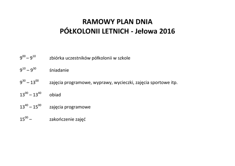 RAMOWY PLAN DNIA PÓŁKOLONII LETNICH