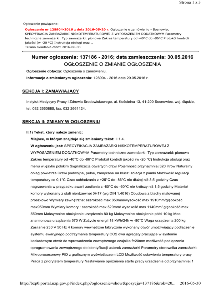 Ogłoszenie o zmianie - Instytut Medycyny Pracy i Zdrowia