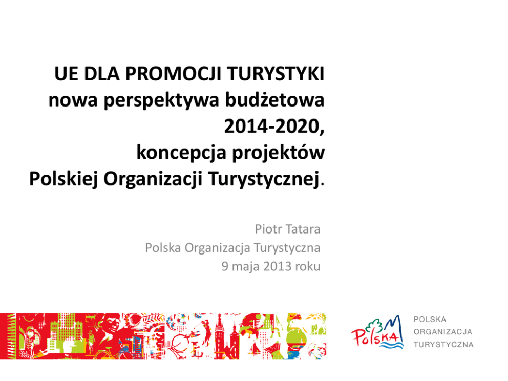 UE DLA PROMOCJI TURYSTYKI nowa perspektywa budżetowa 2014-2020, koncepcja projektów Polskiej Organizacji Turystycznej. Piotr Tatara Polska Organizacja Turystyczna 9 maja 2013 roku Projekty systemowe Polskiej Organizacji Turystycznej 2014-2020 • Promocja polskiej turystyki na rynkach zagranicznych • Zintegrowany system regionalnych badań ruchu turystycznego • e-turysta z wykorzystaniem najnowocześniejszych technik komunikacyjnych Ogólne informacje o projekcie Wstępny budżet projektu - 300 mln zł (w tym 100 mln zł dla przedsiębiorców działających w turystyce) Czas trwania projektu: 2015- 2020 Obszar działań objętych wsparciem projektu - Europa, Azja, Ameryka Grupa docelowa • Turyści zagraniczni, potencjalni turyści zagraniczni • Dziennikarze, zagraniczne środowiska opiniotwórcze • Touroperatorzy, agenci podróży • Polonia, Polacy najnowszej emigracji • Cudzoziemscy studenci i absolwenci polskich uczelni • Polacy zamieszkujący kraj • Krajowe środowiska opiniotwórcze i mieszkańcy • Krajowi właściciele i zarządzający atrakcjami tworzącymi produkt turystyczny • Zagraniczne organizacje, korporacje i stowarzyszenia Cel projektu • Wzrost konkurencyjności polskiej turystyki poprzez poprawę jej wizerunku na arenie międzynarodowej oraz upowszechnianie wiedzy o Polsce i możliwościach nawiązywania kontaktów biznesowych w turystyce. Cele szczegółowe • Wzrost liczby przyjazdów turystów zagranicznych do Polski • Wzrost eksportu usług turystycznych poprzez zwiększenie wydatków turysty zagranicznego na organizację pobytu w Polsce • Wsparcie dla przedsiębiorstw turystycznych poprzez dofinansowanie kosztów promocji i sprzedaży usług turystycznych dla turysty zagranicznego Składowe projektu systemowego • Komponent A Program turystycznej promocji Polski na wskazanych rynkach zagranicznych, których efekt działań oddziałuje na przedsiębiorców turystycznych. • Komponent B Wydzielenie części budżetu w ramach projektu dla przedsiębiorców branży turystycznej celem włączenia ich do realizacji programu turystycznej promocji Polski. Wsparcie przedsiębiorców w programie odbędzie się na drodze konkursu. ( potrzeba stworzenie poddziałania, doświadczenia POT jako IW ) W komponencie A określone zostaną m.in..: • Rodzaje i terminy działań promujących Polskę jako atrakcyjną destynację turystyczną • Rynki, na których będą odbywać się działania promocyjne • Katalog produktów/usług turystycznych, które będą objęte działaniami promującymi • Koszt udziału w poszczególnych działaniach promocyjnych Przykładowe działania promujące w ramach komponentu A: • • • • • Organizacja konferencji, seminariów, warsztatów Organizacja prezentacji, wystaw podczas targów w kraju i zagranicą Organizacja wydarzeń promocyjnych Przygotowanie i dystrybucja materiałów promocyjno-reklamowych Działania w Internecie Komponent B Wsparcie dla przedsiębiorcy turystycznego • Podstawa prawna - Rozporządzenie Ministra właściwego ds. turystyki w sprawie szczegółowego przeznaczenia, warunków i trybu udzielania pomocy finansowej na udział przedsiębiorców turystycznych w projekcie promocji turystycznej w ramach…. • Kryteria wyboru wsparcia przedsiębiorców zostaną zatwierdzone przez Komitet Monitorujący właściwego Programu Operacyjnego Komponent B Wsparcie dla przedsiębiorcy turystycznego • Przedsiębiorca zobowiązany będzie do udziału w co najmniej 60% działań promocyjnych, liczonych w stosunku do ilości wszystkich działań zaplanowanych w turystycznym programie promocji Polski • Maksymalna wielkość pomocy na udział w programie turystycznej promocji Polski nie może przekroczyć 60% poniesionych wydatków kwalifikujących się do objęcia pomocą i kwoty 400 tys. zł za udział w całym programie promocji. Wsparcie dla przedsiębiorcy turystycznego • Zakres pomocy udzielanej przedsiębiorcom w formule de minimis w ramach projektu zostanie określony w rozporządzeniu ministra właściwego ds. turystyki w sprawie szczegółowego przeznaczenia, warunków oraz trybu udzielania pomocy finansowej na udział przedsiębiorców w programie promocji polskiej turystyki realizowanym w ramach Programu Operacyjnego…. Przykładowe wydatki przedsiębiorcy turystycznego kwalifikujące się do objęcia pomocą na udział w programie turystycznej promocji Polski • Koszty udziału w imprezach targowych, wystawienniczych tj.: wynajem powierzchni i zabudowy wystawienniczej, sali konferencyjnej, transportu eksponatów, obsługi stoiska • Zakup usług przygotowania i druku materiałów promocyjnoreklamowych oraz ich tłumaczenia • Koszty opracowania i prowadzenia własnych stron internetowych • Koszty promocji ponoszone w związku z informowaniem o współfinansowaniu ze środków pochodzących z budżetu UE Beneficjenci-przedsiębiorcy turystyczni to: • hotelarze, • touroperatorzy turystyki przyjazdowej, • przewoźnicy, • zarządcy atrakcji turystycznych, • klastry, konsorcja produktowe, itp.. W projekcie przewidziane jest również: • prowadzenie badań ilościowych i jakościowych na rynkach objętych wsparciem projektu o strategicznym znaczeniu w kontekście zagranicznych przyjazdów do Polski • opracowanie i wdrożenie kampanii informacyjno- promocyjnych w mediach zagranicznych • wsparcie rozpoznawalności zagranicznej przedsiębiorców turystycznych w kontaktach handlowych z zagranicznymi partnerami poprzez utworzenie w części portalu www.polska.travel platformy promocyjnej polskich biur podróży turystyki przyjazdowej • współpraca z instytucjami zajmującymi się promocją Polski za granicą (14 zagranicznych przedstawicielstw Polskiej Organizacji Turystycznej, Polskie Instytuty Kultury, Wydziały Promocji Handlu i Inwestycji Konsulatów i Ambasad RP, itp..) Podsumowanie • duża potrzeba promocji Polski za granica w celu upowszechniania wiedzy o Polsce