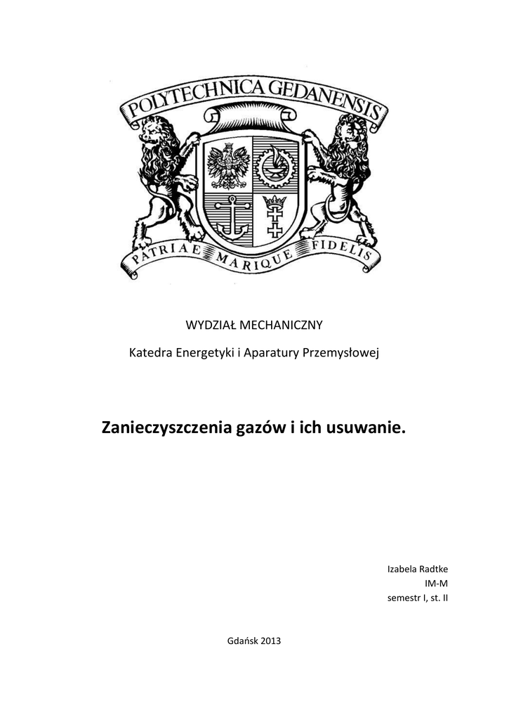Zanieczyszczenia gazów i ich usuwanie.