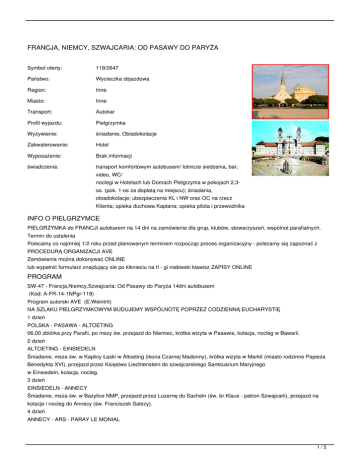 SW-47 - Francja,Niemcy,Szwajcaria: Od Pasawy do Paryża 14dni autobusem