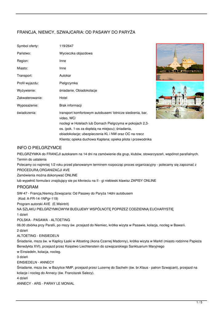 PIELGRZYMKA do FRANCJI autokarem na 14 dni na zamówienie dla grup, klubów, stowarzyszeń, wspólnot parafialnych.