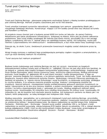 Tunel pod Cieśniną Beringa - planowane połączenie wschodniej Syberii z Alaską tunelem przebiegającym