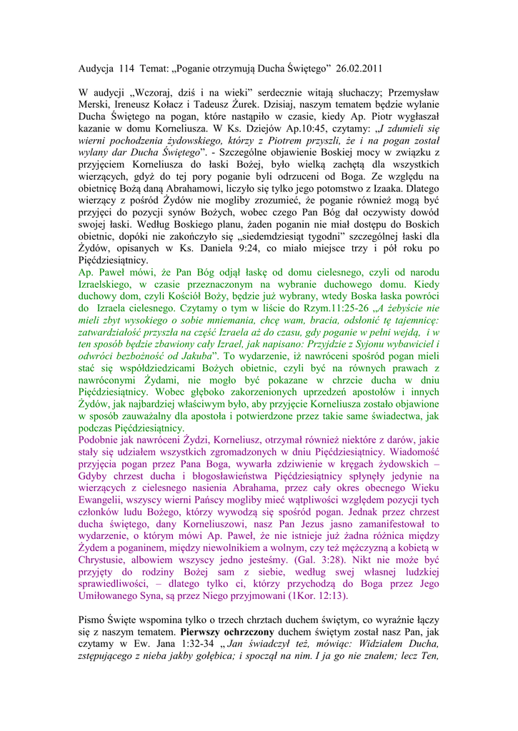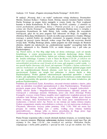 Audycja 114 Temat: „Poganie otrzymują Ducha Świętego” 26