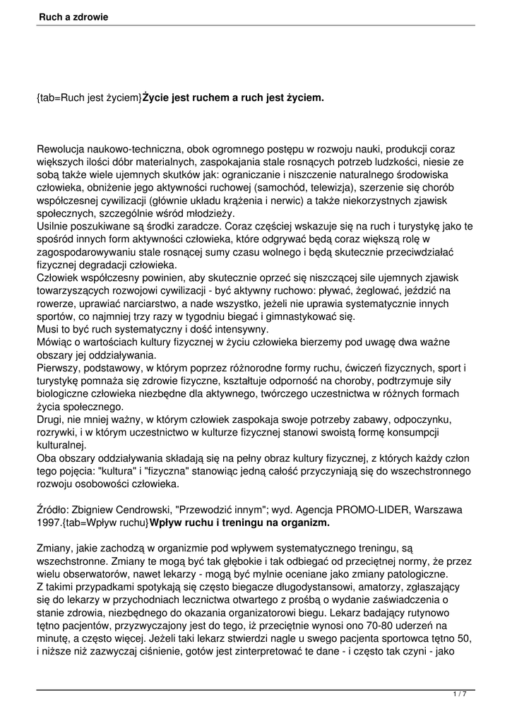 1997.{tab=Wpływ ruchu}Wpływ ruchu i treningu na organizm.