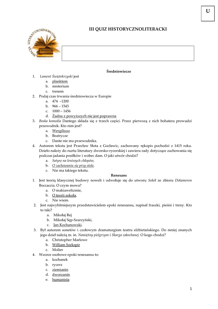 III QUIZ HISTORYCZNOLITERACKI
