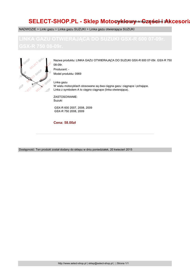 LINKA GAZU OTWIERAJÄ—CA DO SUZUKI GSX-R 600 07