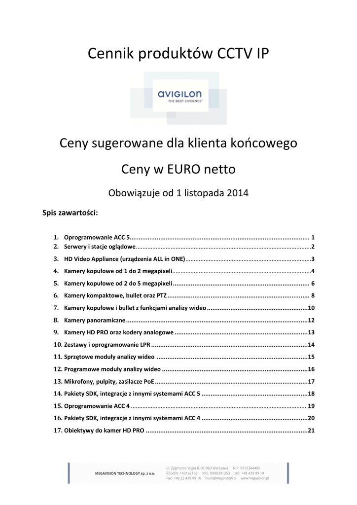 licencjonowane na podstawie liczby kamer, z których system będzie rejestrował obraz. Na stronie Avigilon