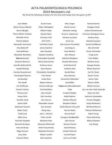 ACTA PALAEONTOLOGICA POLONICA 2014 Reviewers List