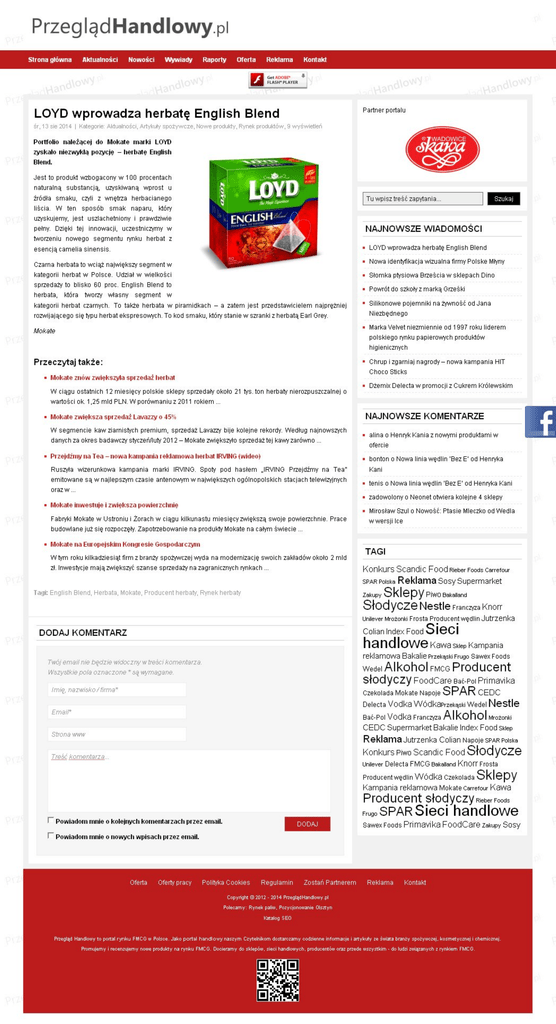 Prze g ląd Handlowy.pl Strona głÓwna Aktualności Nowości LOYD wprowadza śr, 13 sie 2014 Portfolio 1 Wywiady herbatę Raporty Oferta Reklama Konta ki Partner portalu English Blend Kategorie: Aktualności, Artykuły spożywcze, Nowe produkty, Rynek produktów, 9 wyświetleń należącej zyskało niezwyklą do Mokate marki LOYD JlOzycję - herbatę English Blend. Jest to produkt wzbogacony w 100 procentach naturatną substancją, uzyskiwaną wprost u lTu wpisz treść zapytania... iródla smaku. czyli z wnętrza herbacianego liścia. W ten sposób smak naparu, który uzyskujemy, jest uszlachetniony i prawdziwie pelny. Dzięki tej innowacji, uczestniczymy w tworzeniu nowego segmentu rynku herbat z esencją Szukaj NAJNOWSZE WIADOMOŚCI • LOYD wprowadza herbatę English Blend camelia sinensis. Czarna herbata to wciąż największy segment w kategorii herbat w Polsce. Udzial w wielkości sprzedaży to blisko 60 proc. English Blend to herbata, która tworzy wlasny segment w • Nowa identyfikacja wizualna firmy Polske Mtyny kategorii herbat czarnych. To także herbata w piramidkach - a zatem jest przedstawicielem najprężniej rozwijającego się typu herbat ekspresowych. To kod smaku, który stanie w szranki z herbatą Earl Grey. • Silikonowe pojemniki na żywność od Jana • Slomka ptysiowa Brześcia w sklepach Dino • Powrót do szkoty z marką Grześki Niezbędnego • t•larka Velvet niezmiennie od 1997 roku liderem polskiego rynku papierowych produktów higienicznych Mokale Przeczytaj także: • Chrup i zgarniaj nagrody- nowa kampania HIT Choco Sticks • Mokate znów zwiększyła St>rzed,li herbat W ciągu ostatnich 12 miesięcy polskie sklepy sprzedaty okolo 21 tys. ton herbaty nierozpuszczalnej o wartości ok. 1,25 mld PLN. W porównaniu z 2011 rokiem ... • Dżemix Delecta w promocji z Cukrem Królewskim NAJNOWSZE KOMENTARZE • Mokate zwiększa SJlrzedaż l<Mlzzy o 45% W segmencie kaw ziarnistych premium. sprzedaż Lavazzy bije kolejne rekordy. Wedlug najnowszych danych za okres badawczy styczeń/luty 2012 - Mokale zwiększylo sprzedaż tej kawy zarówno ... • Przejdźmy m1 Tea -nowa kamt>ania rekl,mlowa herbatiRVING (wideo) • alina o Henryk Kania z nowymi produktami w ofercie • bonton o Nowa linia wędlin 'Bez E' od Henryka Ruszyta wizerunkowa kampania marki IRVING. Spoty pod hasłem .,IRVING Przejdźmy na Tea" emitowane są w najlepszym czasie antenowym w największych ogólnopolskich stacjach telewizyjnych oraz w ... Kani • tenis o Nowa linia wędlin 'Bez E' od Henryka Kani • zadowolony o Neonet otwiera kolejne 4 sklepy • Mokate inwestuje i zwiększa t>owierzchnię Fabryki Mokale w Ustroniu i Żorach w ciągu kilkunastu miesięcy zwiększą swoje powierzchnie. Prace budowlane już się rozpoczęty. Zapotrzebowanie na produkty Mokale na catym świecie ... • Mokale na EuroJlejskim Kongresie Gost>odarczym W tym roku kilkadziesiąt firm z branży spożywczej wyda na modernizację swoich zł. Inwestycje mają zwiększyć szanse sprzedaży na zagranicznych rynkach ... zakładów okolo 2 mld • Mirosław Szui o Nowość: Ptasie Mleczko od Wedla w wersji Iee TAGI Konkurs Scandi c F o od Rieber Foods Carrefour SPAR Polska T.lgi: English Blend, Herbata, Mokate, Producent herbaty, Rynek herbaty Reklama Sosy Supermarket Zakupy sklep YPiwo Bakaliand Słodycze Nestle Franczyza Knorr Unilever Mrożonki Frosła Producent wędlin Jutrzenka Colian Ind ex F o od DODAJ KOMENTARZ ha ndlowe Kawa Sklep Kampania reklamowa Bakalie Przekąski Frugo Sawex Foods Twój email nie będzie widoczny w treści komentarza. Wszystkie pola oznaczone • są wymagane. Imię, S ie C i WedelAlkohol FMCG Producent Słodyczy FoodCare Bać-Pol Primavika nazwisko/firma• Czekolada Mokale Napoje SPAR CEDC Delecta Vodka WódkaPrzekąski Wedel Nestle Emaif* Bać·Pol Vodka Franczyza Alkohol Mrożonki CEDC Supermarket Bakalie Ind ex F o od Sklep Slronawww Reklama Jutrzenka ColianNapoje SPAR Polska Konkurs Piwo Scandic Food Słodycze Unilever Oelecta FMCG Bakaliand Knorr Frosta Producentwędlin Wódka Czekolada Sklepy Kampania reklamowa Mokale carrefour Kawa Producent r r FrugoSPAR Powiadommnie o kolejnych komentarzach t>rzez email. Powiadommnie o nowych WJliSach Jlrzez email. DODAJ słodyczy RieberFoods Sieci handlowe Sawex Foods Pri mavi ka F oodCare Zakupy Sosy