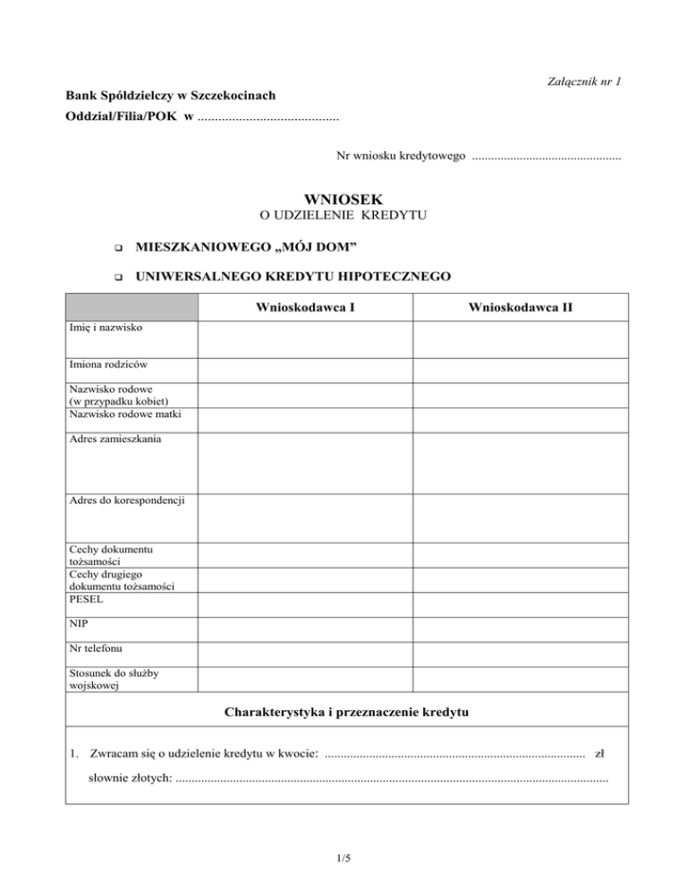 wniosek - Bank Spółdzielczy w Szczekocinach
