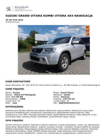 SUZUKI GRAND VITARA KOMBI VITARA 4X4 NAWIGACJA