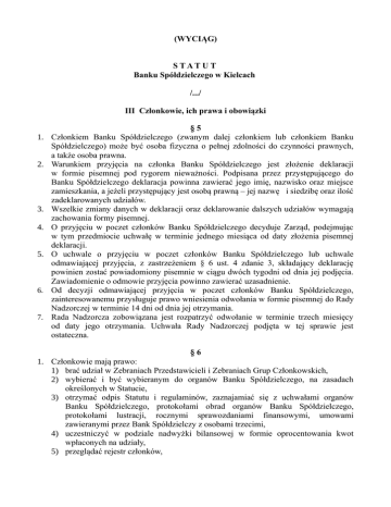 (WYCIĄG) S T A T U T Banku Spółdzielczego w Kielcach