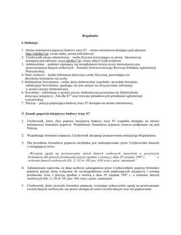 Regulamin I. Definicje: 1. Strona internetowa poparcia budowy trasy