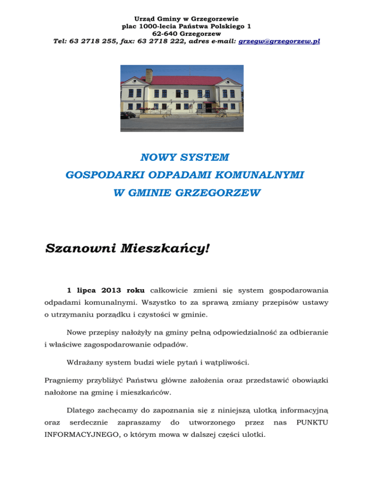 Szanowni Mieszkańcy! - bip.grzegorzew